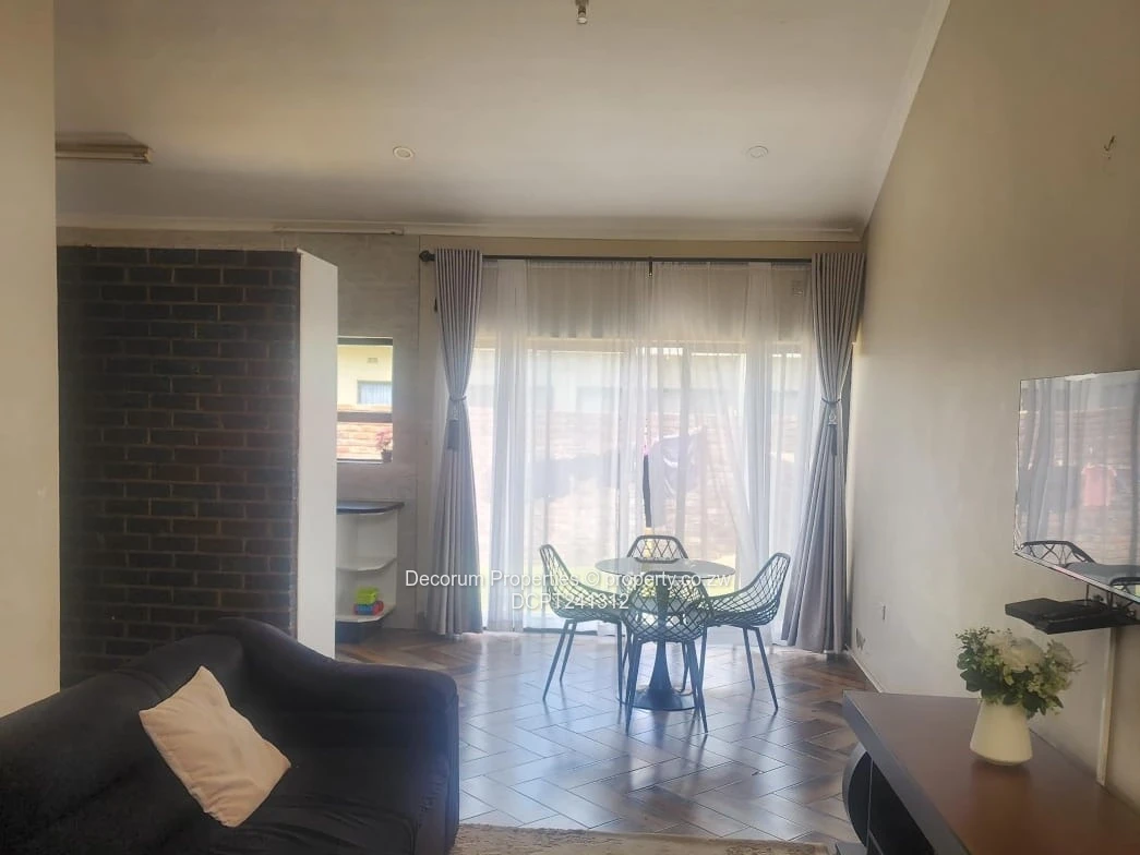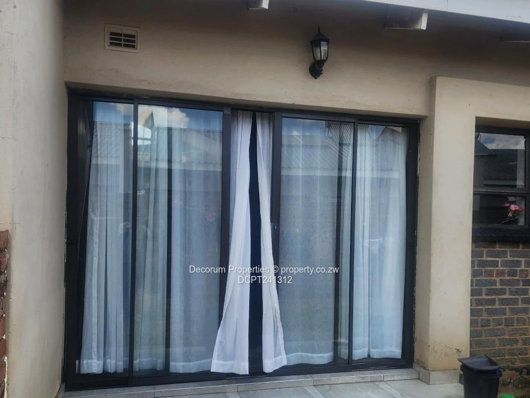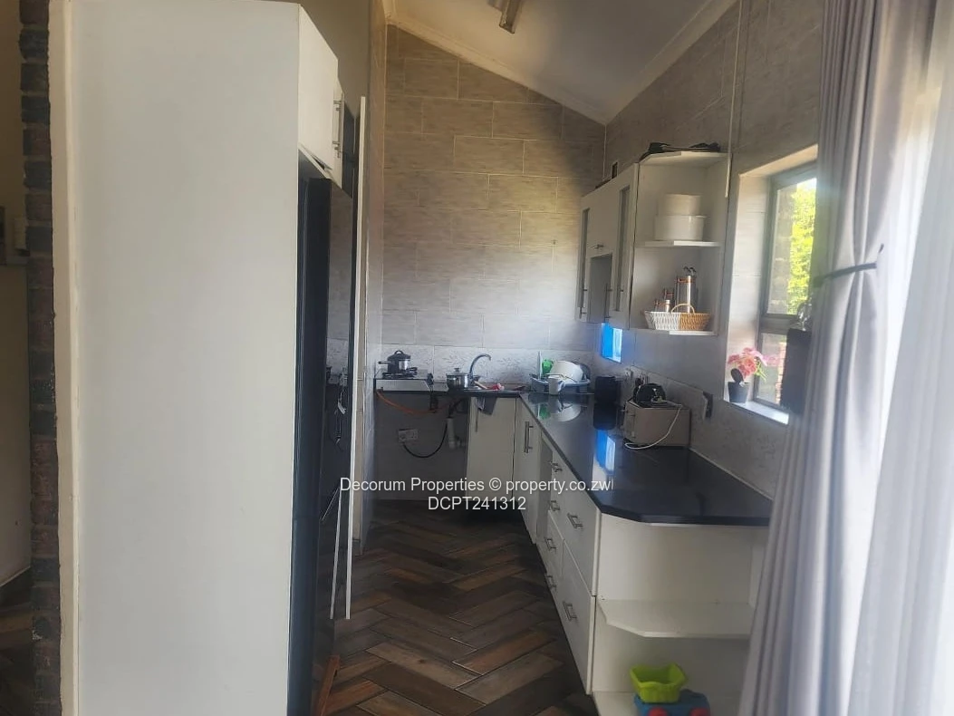 The unit features 2 bedrooms with built-in cupboards, a fully fitted kitchen, tiled floors, and ceiling finishes throughout. It is equipped with a borehole and water tank backup, as well as solar backup power and a solar geyser, ensuring reliable utilities year-round.