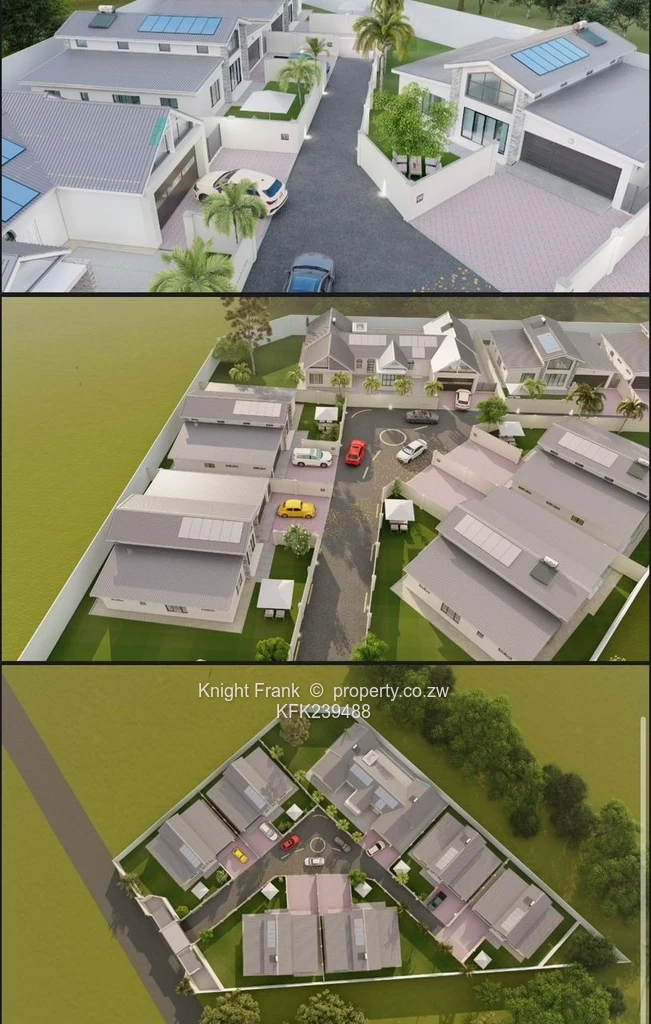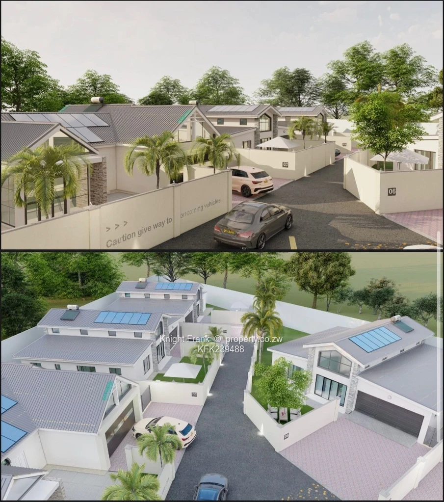 The development offers paved internal roads, dedicated parking and double garages, neat paved driveways and a central turning circle for easy access. Roof-mounted solar panels and visible water heating systems enhance efficiency across the complex. Importantly this property benefits from its own borehole supply, guaranteeing reliable water and reduced running costs.
