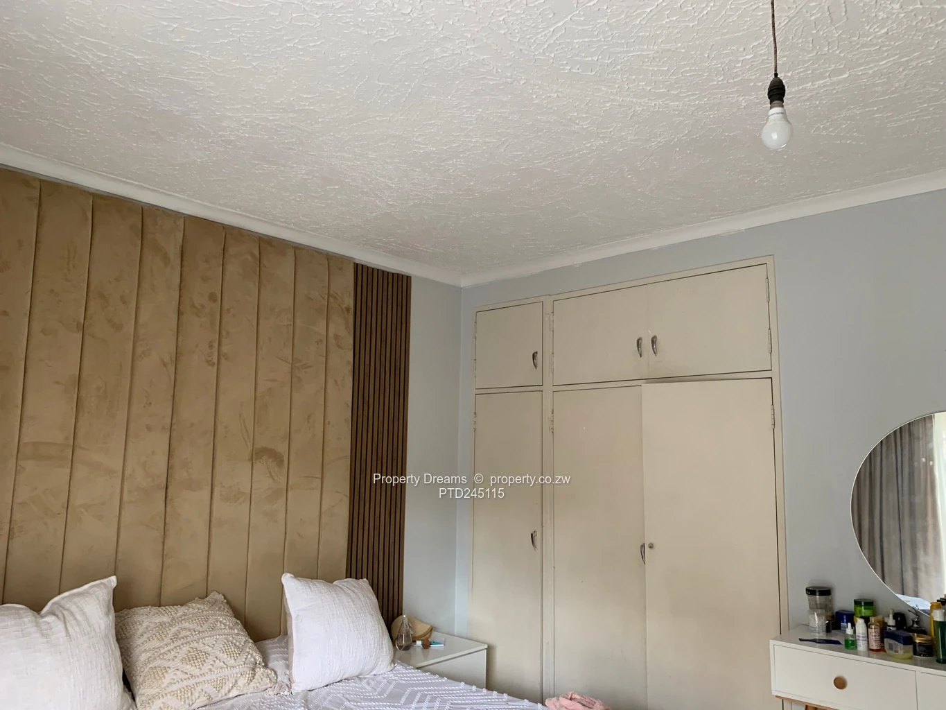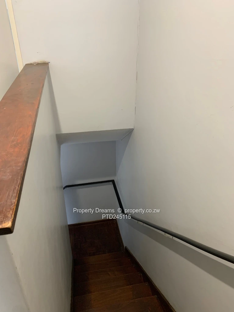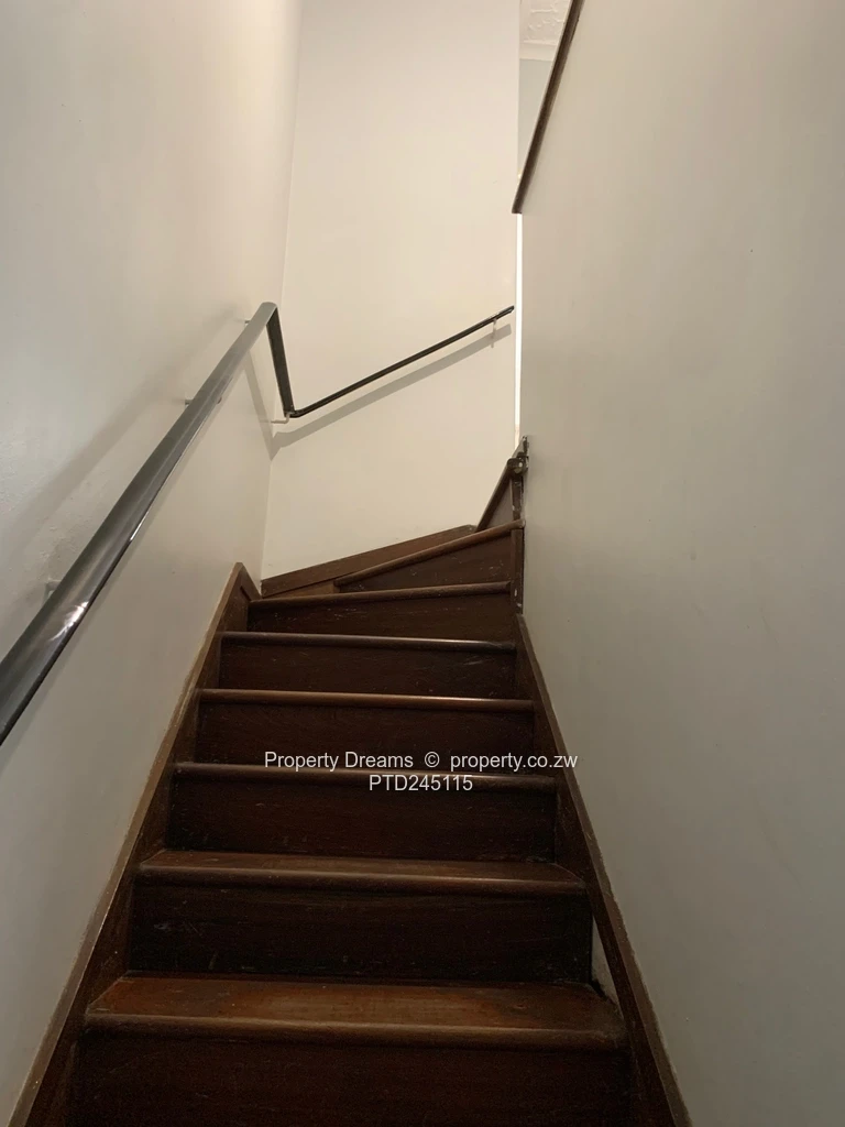 Garden flat for sale in the heart of Harare CBD — a smart, low-maintenance 90 m² apartment on a spacious 2,000 m² stand. This neat 2-bedroom, 2-bath home is ideal for professionals, small families or investors seeking city convenience with room to breathe. As seen in the photos, the kitchen is practical and modern with crisp white upper cabinetry, glass-fronted cupboards, grey lower units and a sleek black countertop, plus space for appliances and a built-in microwave. Interior photos show a tidy tiled shower and functional bathroom fittings, good-sized built-in bedroom cupboards and a compact wooden stairwell leading to the flat. The large garden and grounds offer secure parking and excellent potential for landscaping or expansion. Reliable water supply from an on-site borehole gives peace of mind in the CBD. Close to offices, shops and transport routes — immediate occupation possible, or rent out for steady income. Contact us to view.