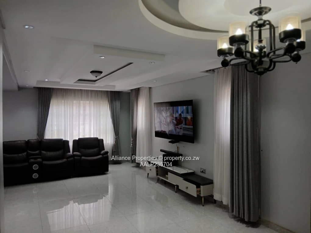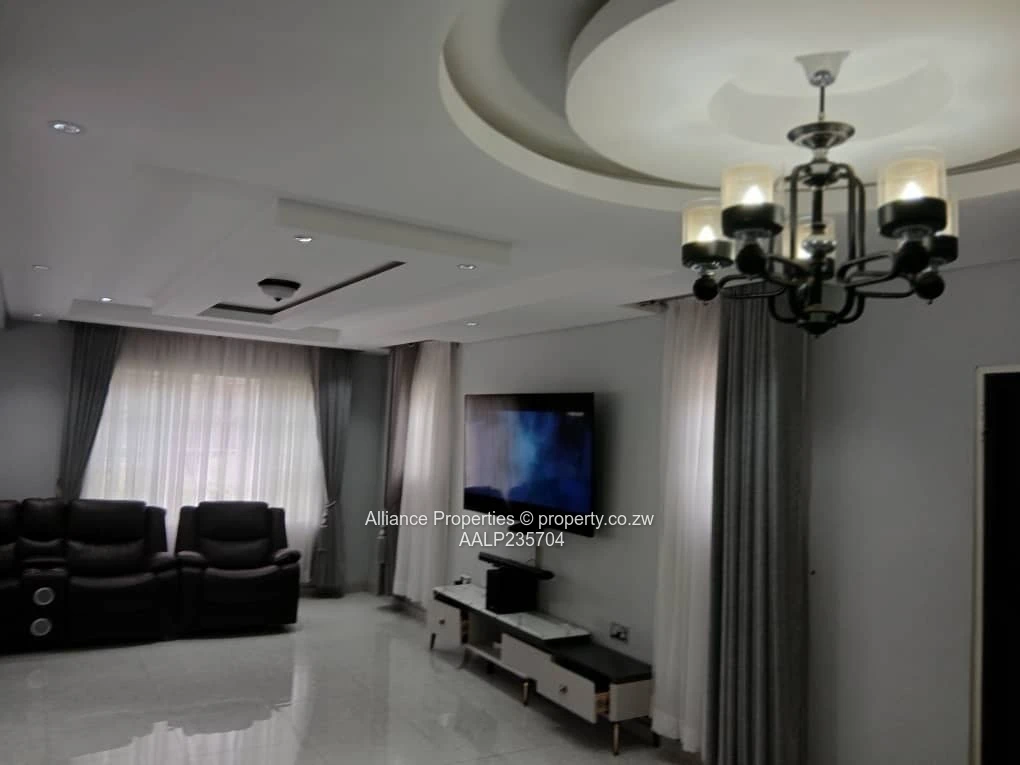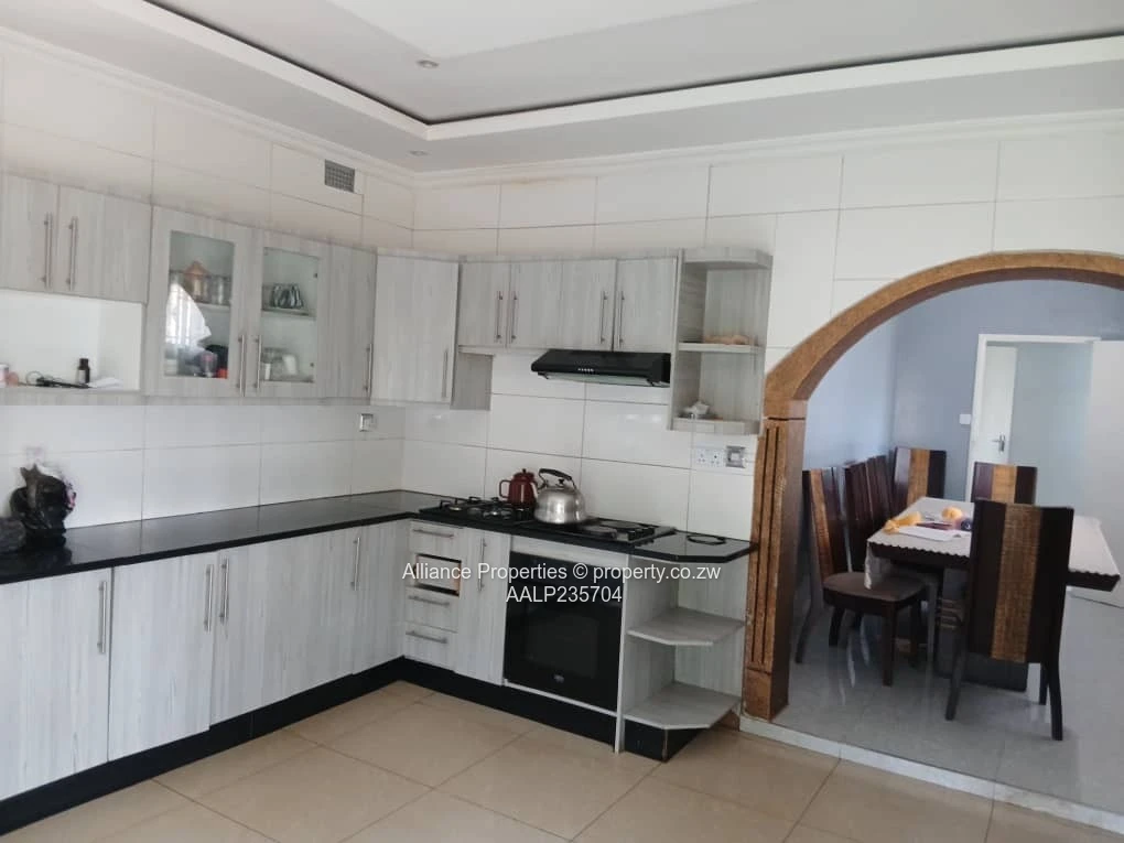A solid double-storey structure featuring five bedrooms, including a main en-suite (MES). The ground floor boasts a seamless open-plan lounge integrated with a modern fitted kitchen. The property includes a swimming pool, perfect for relaxation and entertainment.