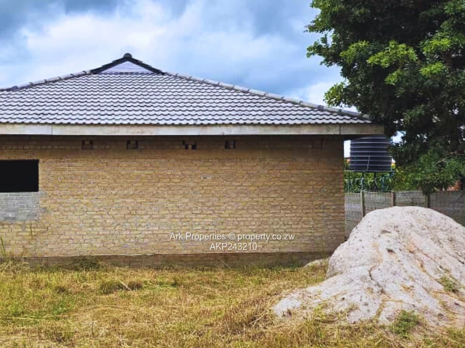 - Incomplete house constructed up to roof level, with electrical tubing.
