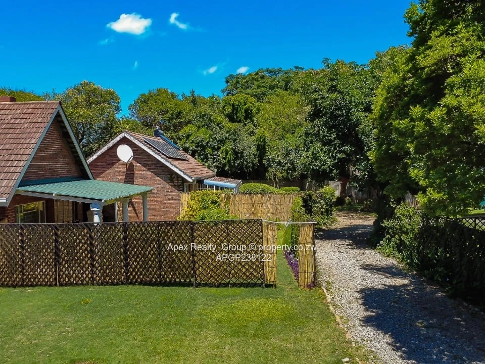 The complex is securely walled with razor wire and an electric gate, with irrigated gardens throughout. Water supply includes a seasonal borehole and reliable municipal water.