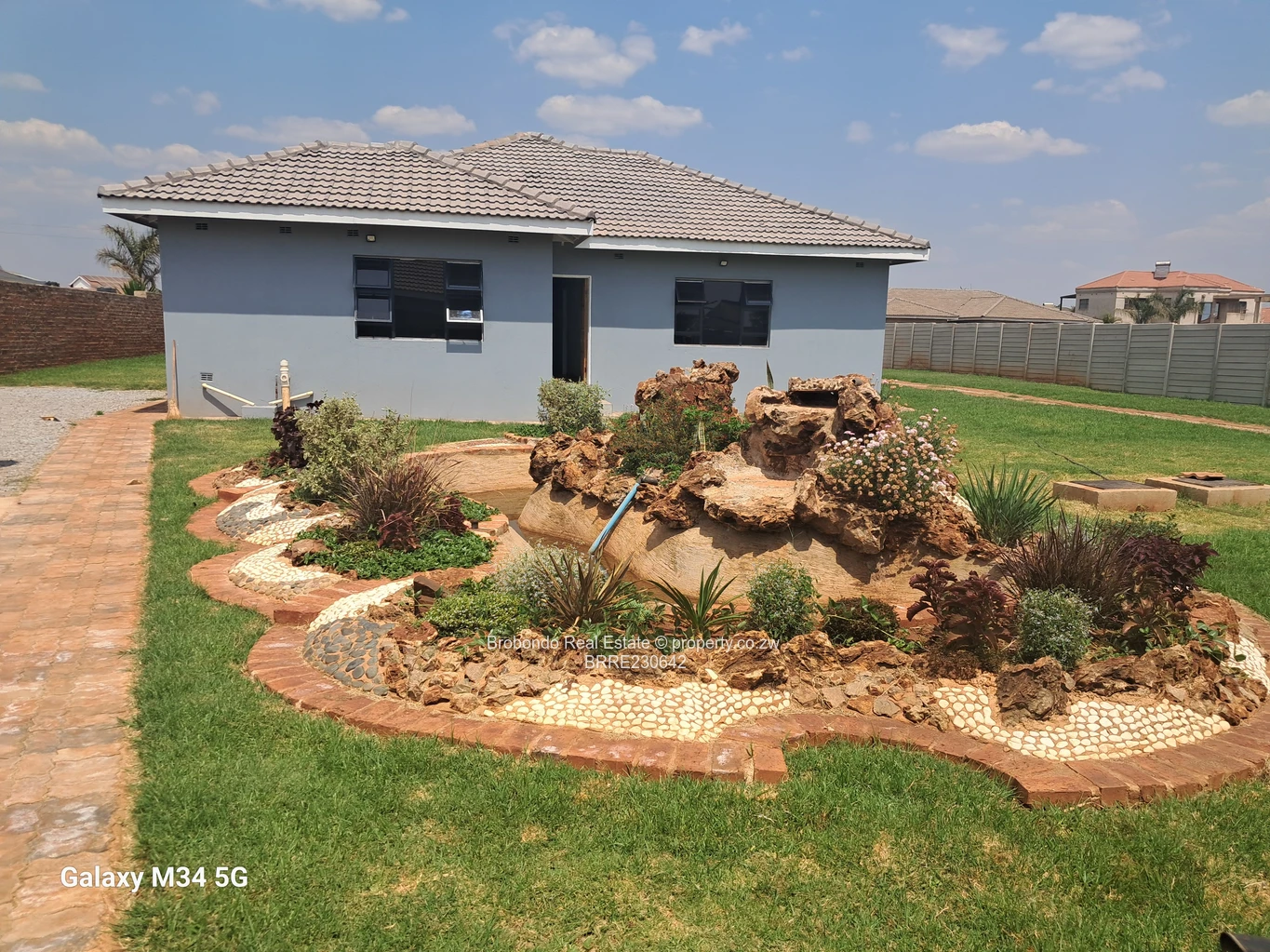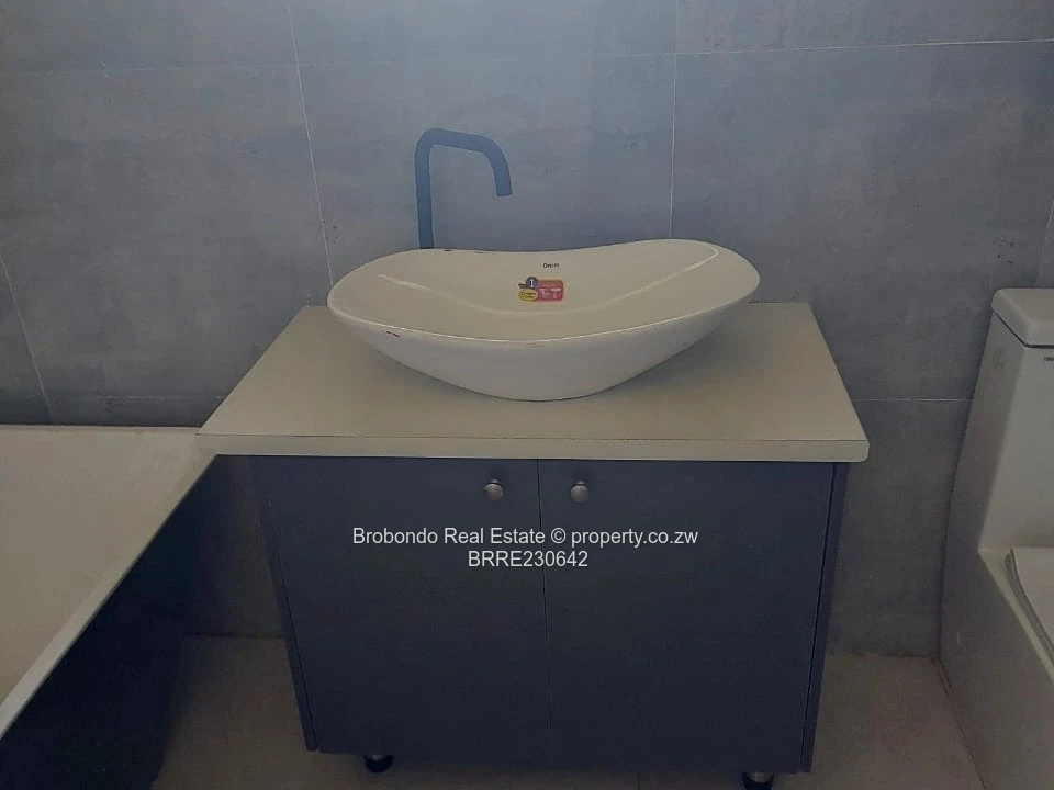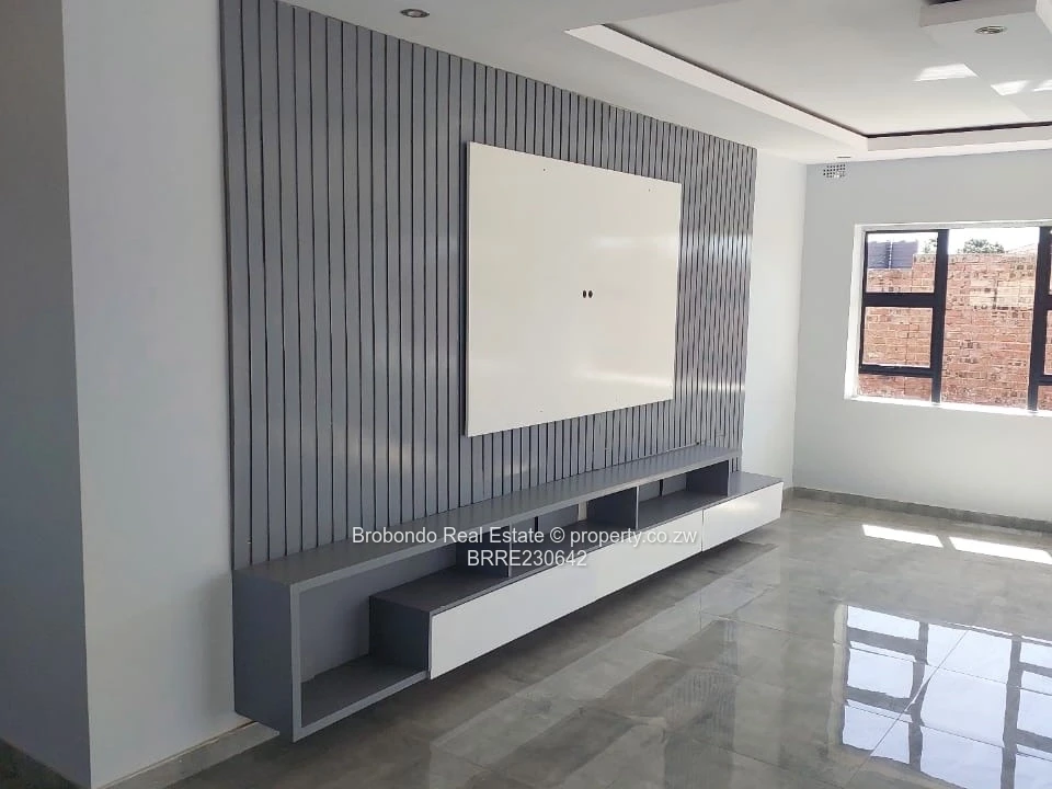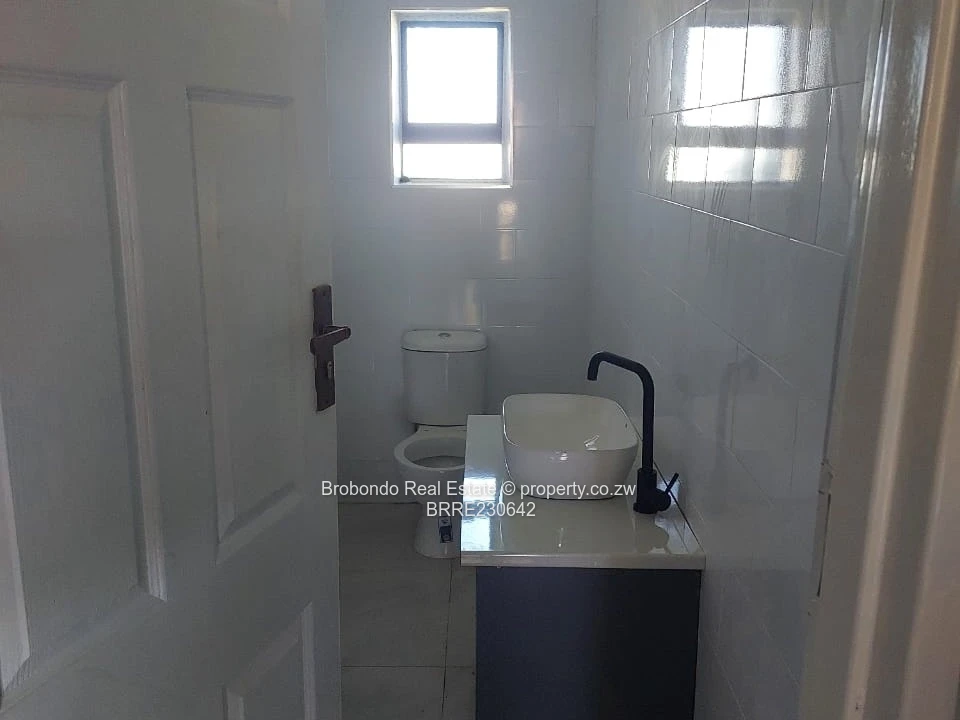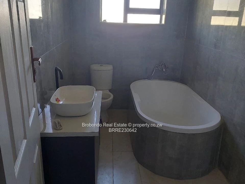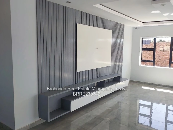 Brobondo Real Estate is proud to offer this neat and recently built 5 bedroomed house with three (3) ensuites, open plan lounge, fitted kitchen and dining, breakfast nuke, scullery, pantry, family ensuites with shower cubicles and tubs, toilet and bathroom, master bedroom with electric shower and walk in closet, tiled floors, zesa, borehole and 5000l water tank, double lockup garage, yard with water fountains, Gazebo, well maintained yard, walled and gated.