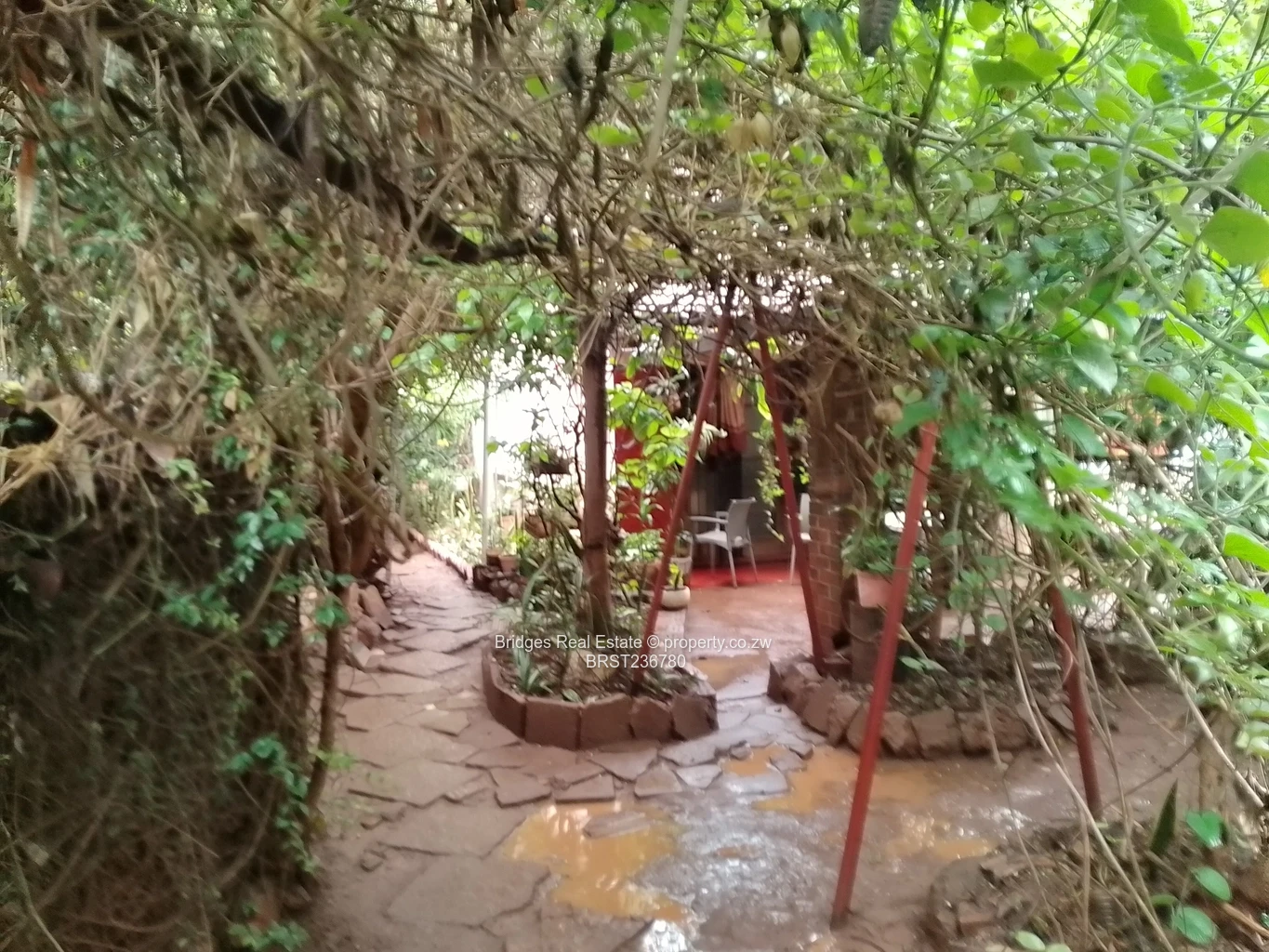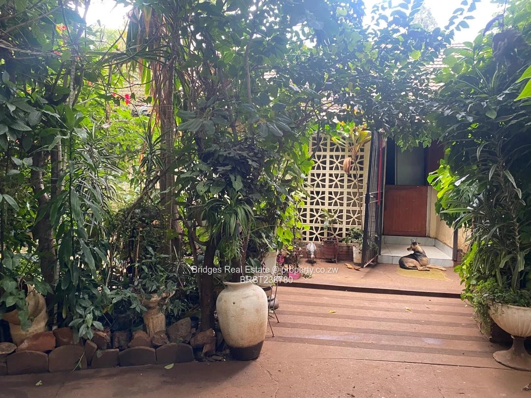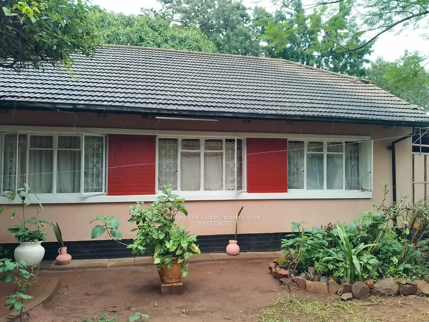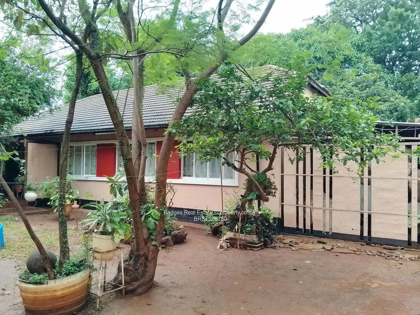 On some good 1800sqm of well treed land with Title Deeds in Mabelreign Central is this solid and intact house that comprises-3 family bedrooms of fair size ,full wall and floor tiled family bathroom, half wall tiled separate toilet, Semi Open plan Lounge and Dining, fitted kitchen boasting of timeless style with sturdy, reliable fittings that exude durability and character, passage linen cupboards/pantry, garage converted into 2 roomed staff accomodation with outside toilet, adjoining the conversion is a makeshift carport for six made of fabricated steel. A water well and 5000l water tank backs up irregular municipality supplies. Perimiter boundaries are a standard height panelled walling and a sliding gate.