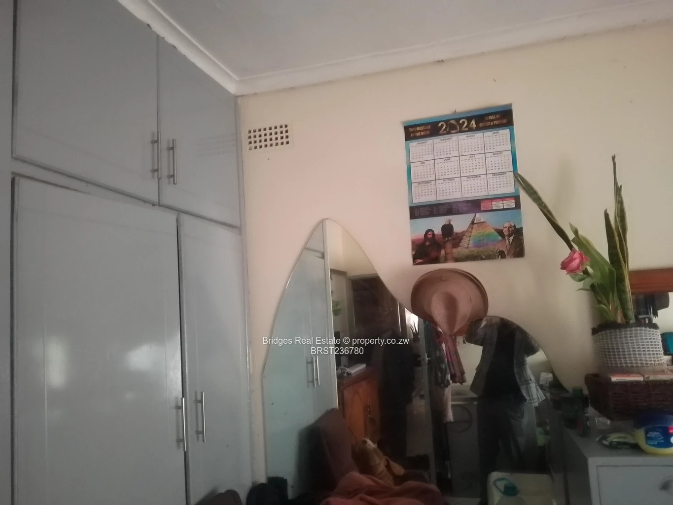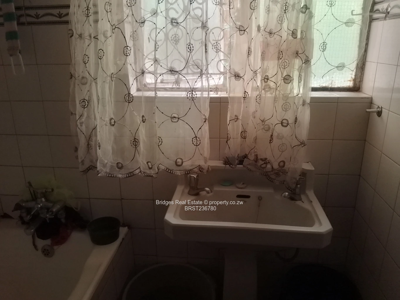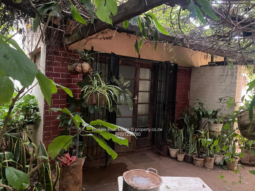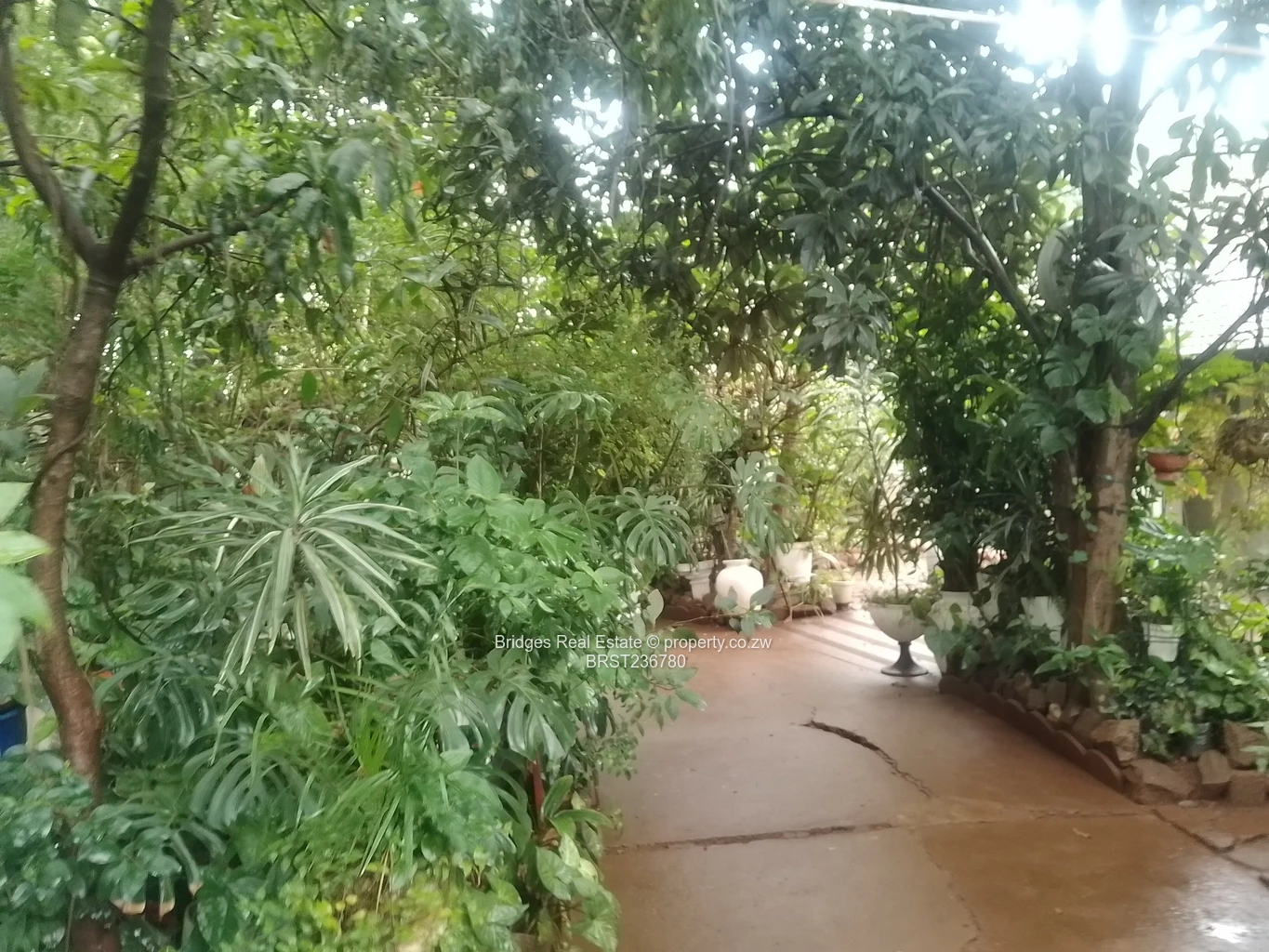 On some good 1800sqm of well treed land with Title Deeds in Mabelreign Central is this solid and intact house that comprises-3 family bedrooms of fair size ,full wall and floor tiled family bathroom, half wall tiled separate toilet, Semi Open plan Lounge and Dining, fitted kitchen boasting of timeless style with sturdy, reliable fittings that exude durability and character, passage linen cupboards/pantry, garage converted into 2 roomed staff accomodation with outside toilet, adjoining the conversion is a makeshift carport for six made of fabricated steel. A water well and 5000l water tank backs up irregular municipality supplies. Perimiter boundaries are a standard height panelled walling and a sliding gate.