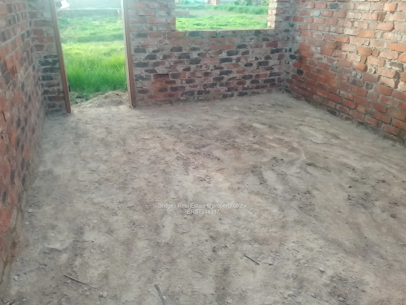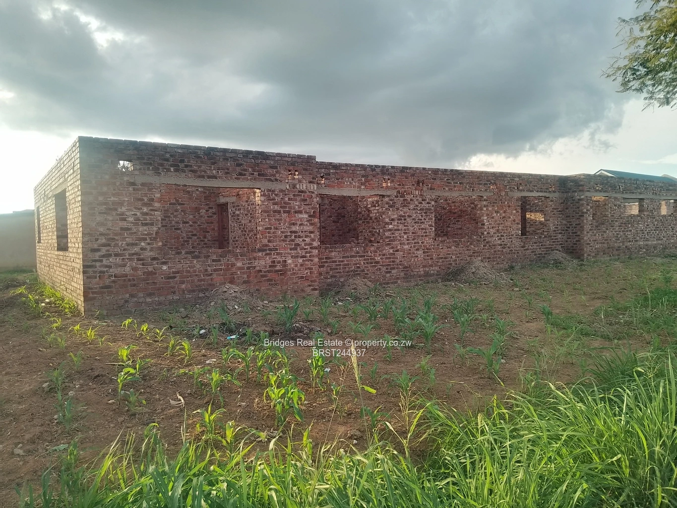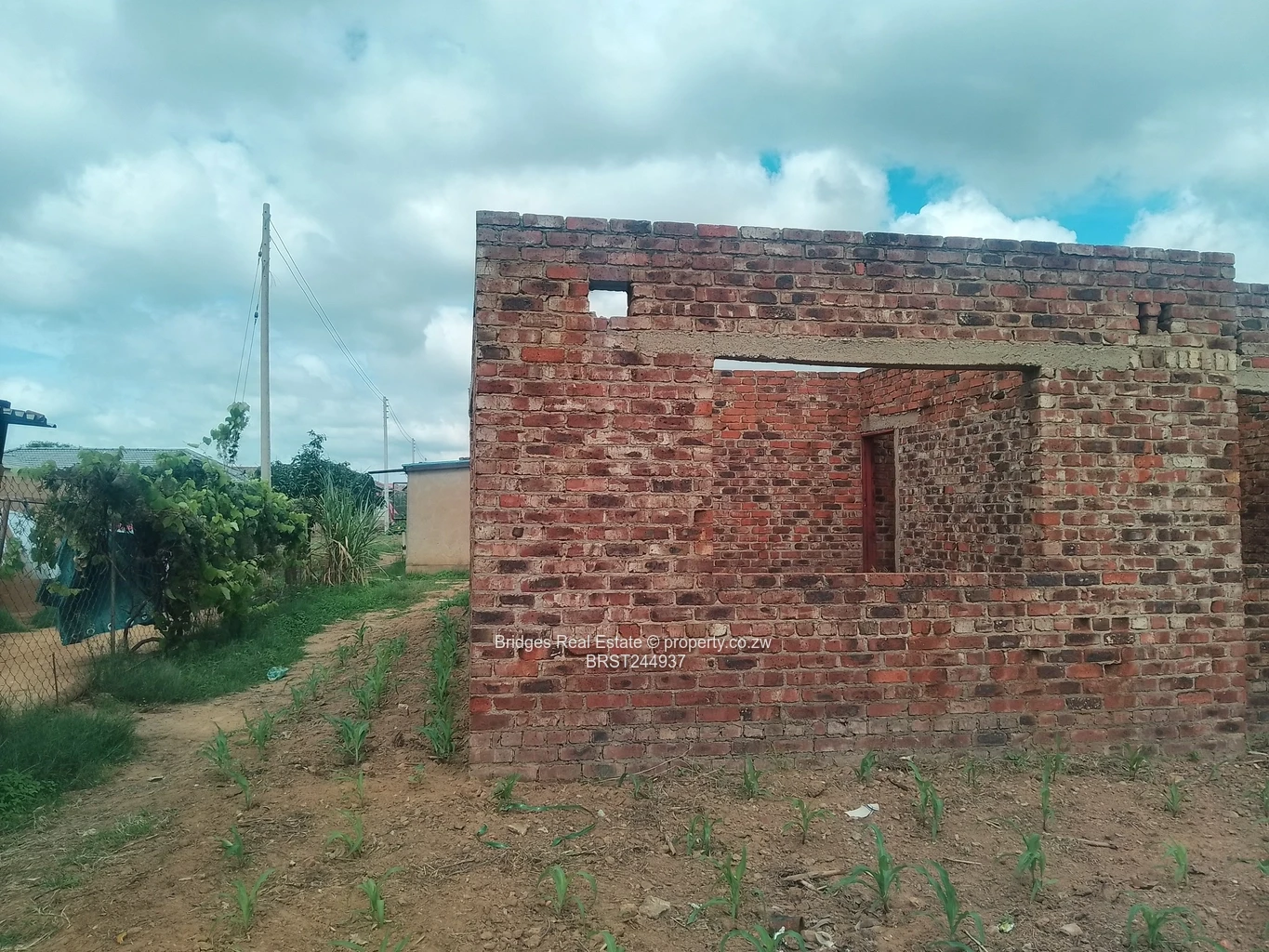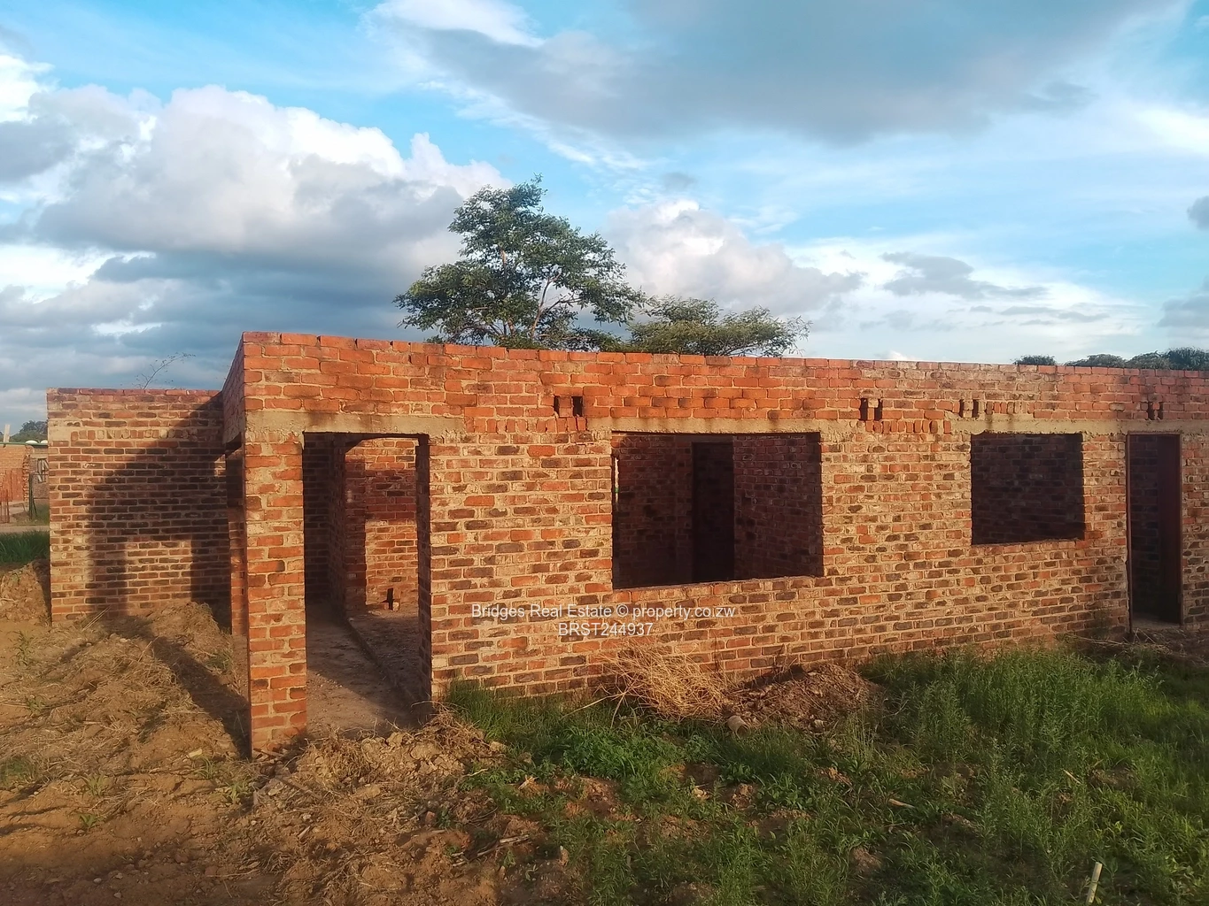 Incomplete 4 Bed house on 502sqm in Glaudina ,UZ Workers Trust Development,fully serviced,with water a hydrant at one of the corners,functional municipality sewer and electricity being worked on, very close to Bulawayo Road, in a well built and well sought after area built to lintel level consisting of 4 bedrooms provision for (MES) ,walk in Dresser , BICs lounge,dining, kitchen ,entrance hall ,Family Toilet and Bathroom,Single Lock Up Garage and front verandah.