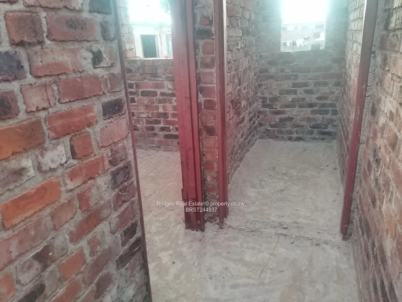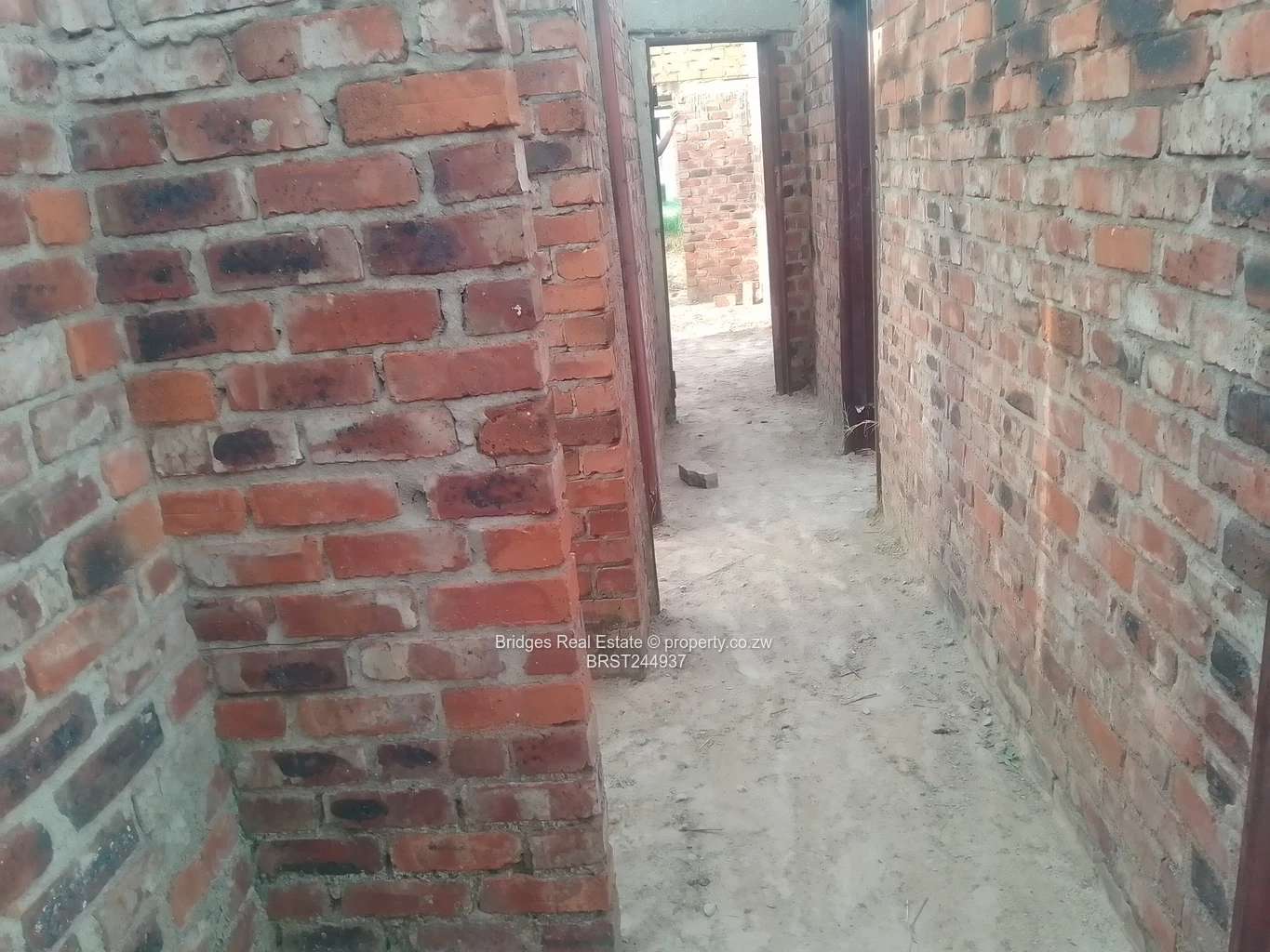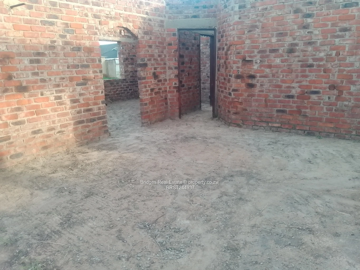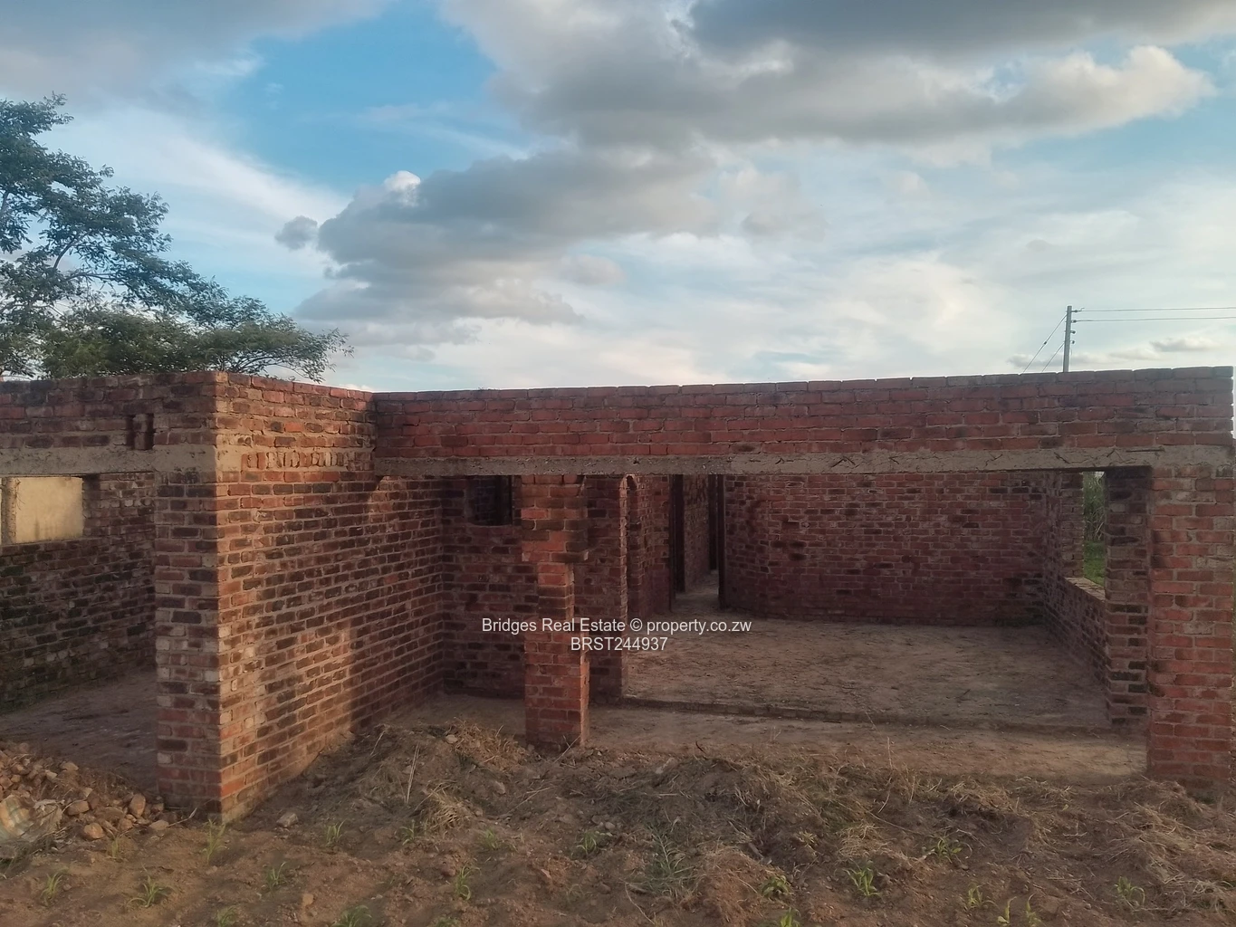 Incomplete 4 Bed house on 502sqm in Glaudina ,UZ Workers Trust Development,fully serviced,with water a hydrant at one of the corners,functional municipality sewer and electricity being worked on, very close to Bulawayo Road, in a well built and well sought after area built to lintel level consisting of 4 bedrooms provision for (MES) ,walk in Dresser , BICs lounge,dining, kitchen ,entrance hall ,Family Toilet and Bathroom,Single Lock Up Garage and front verandah.