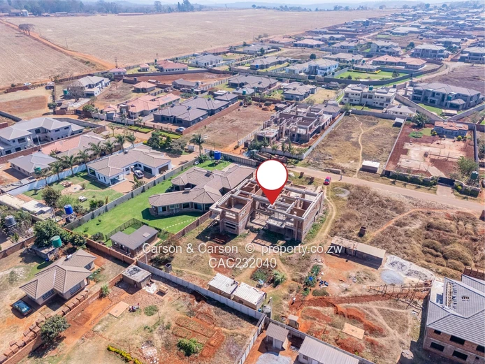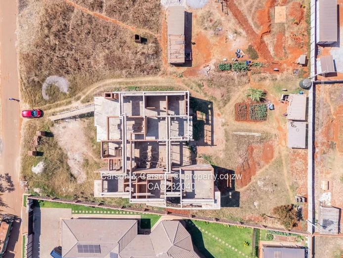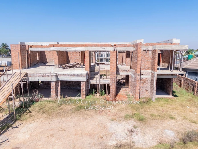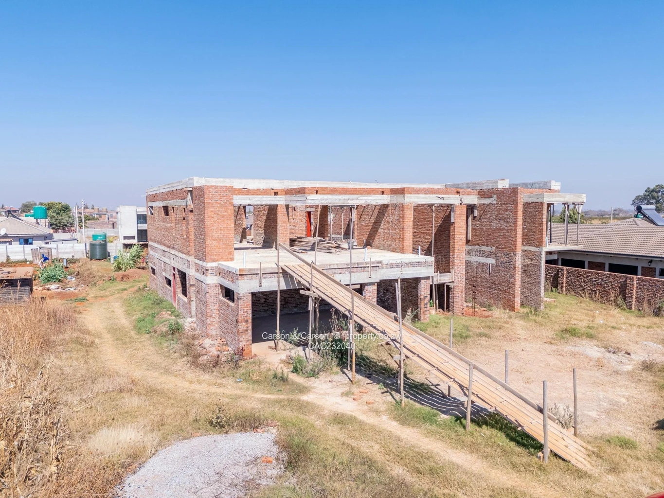 Incomplete 5 beds double storey, 3 ensuites, 2 lounges, 2 kitchens, double lockup garage, borehole, developer cession.