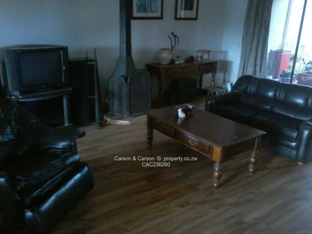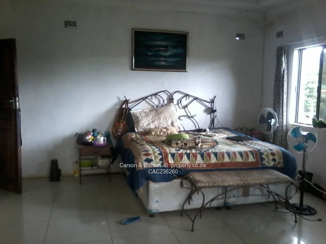 Solid single-storey family home on a generous 3,800 m² stand in Kambanji, Harare North — 3 bedrooms, 3 bathrooms and approximately 1,000 m² of built area offering excellent scope for renovation or an instant family move-in. As seen in the photos: the house sits behind a high brick boundary wall with a green roof and a large curved concrete terrace/patio ideal for entertaining. The mature garden has level lawns, established trees and room for a pool or vegetable plot; a borehole with storage tank provides reliable independent water supply.