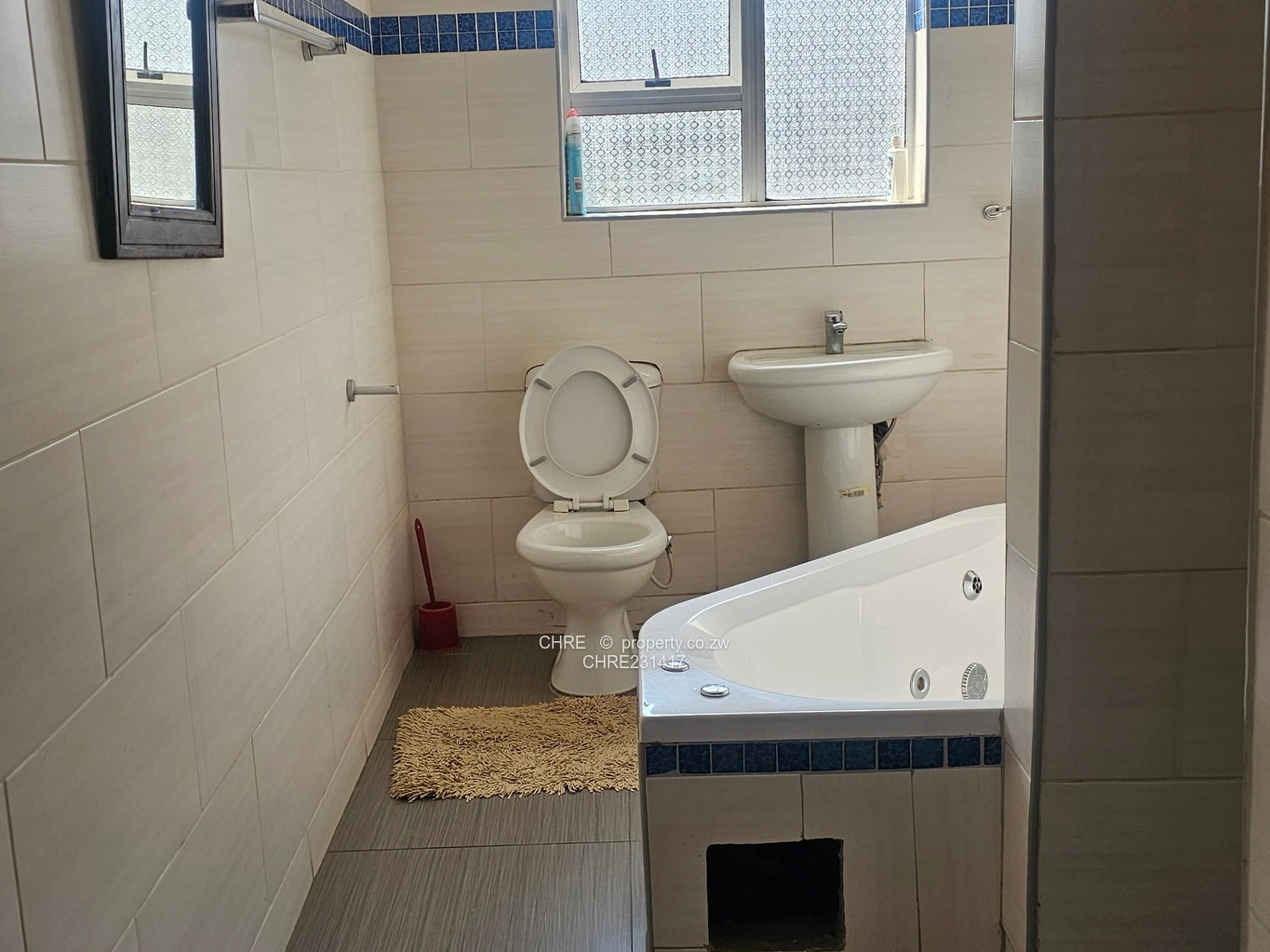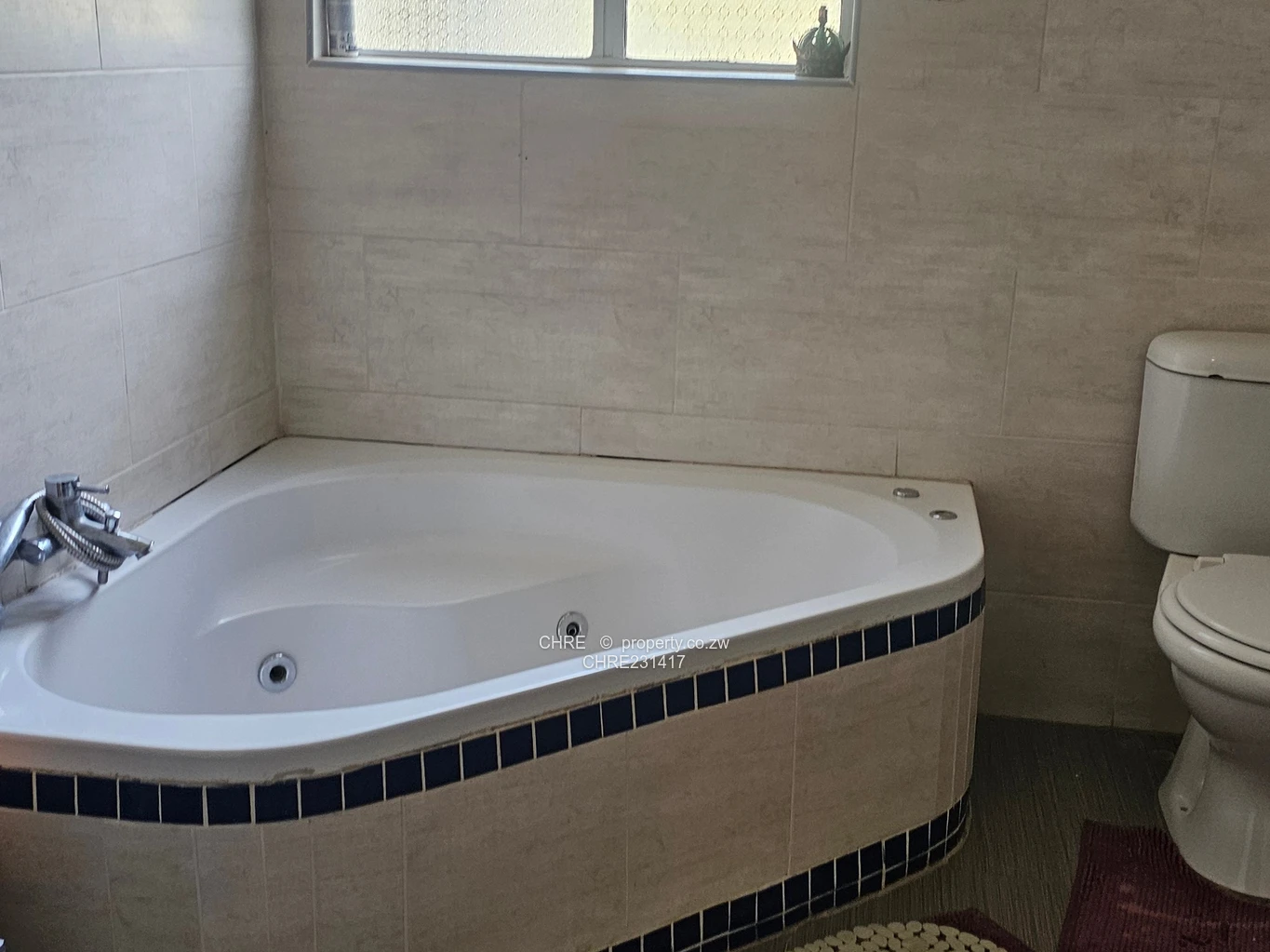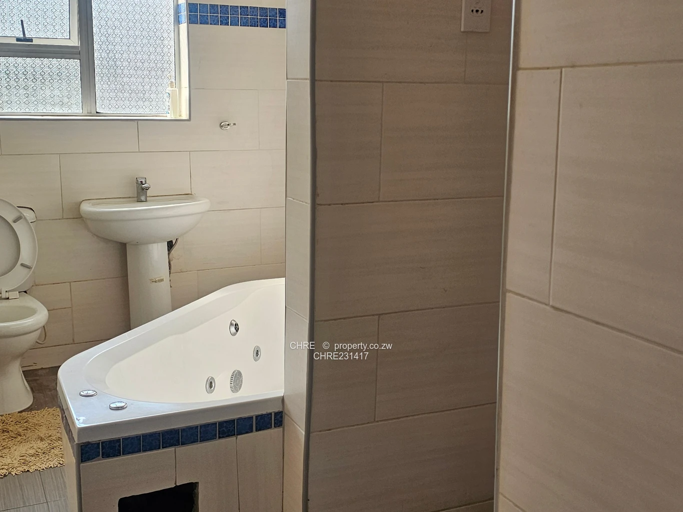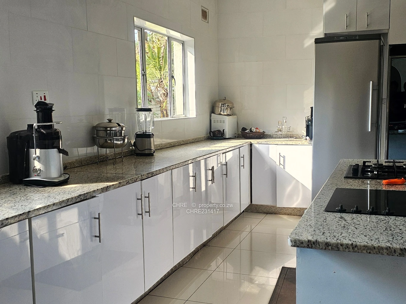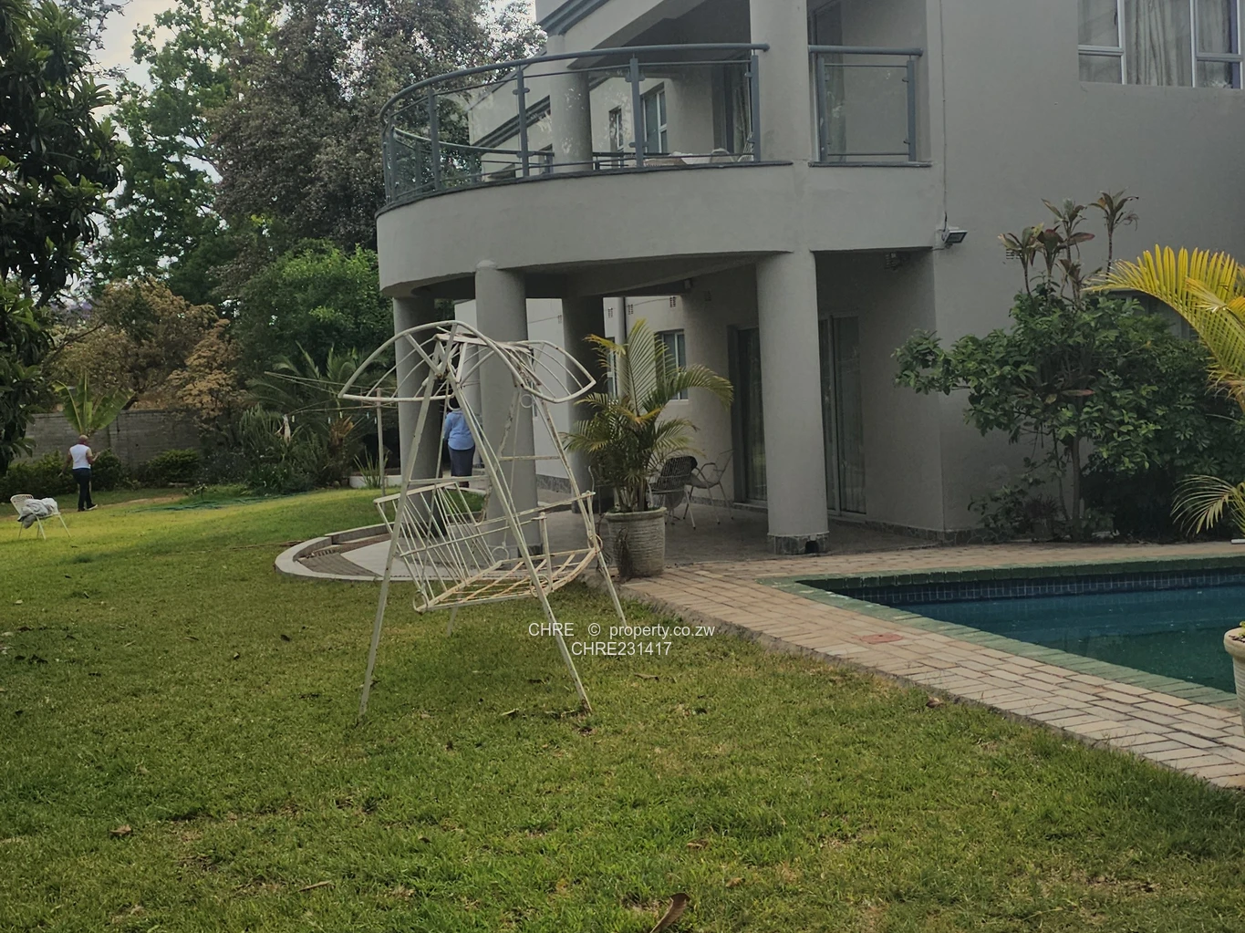 This impressive double-story residence in Chisipite presents a unique 2-in-1 property, comprising a main house and a 4-bedroomed cottage. The main house features 7 spacious bedrooms, including 5 en-suite. The lower level includes 3 en-suite bedrooms, two dining areas, a comfortable lounge, and a modern kitchen with built-in cupboards. A welcome pad and a double lock-up garage complete the lower level. The upper level boasts a separate dining area, a bathroom with a toilet, and 4 additional bedrooms, two of which have en-suite bathrooms. Enjoy breathtaking views from three balcony areas or entertain guests in the dedicated entertainment space. Additional highlights include a fully alarmed security system, a swimming pool, a solar power system, and two boreholes, ensuring convenience and comfort.