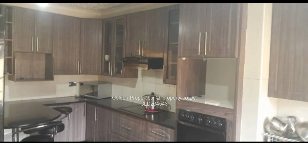 Solid and neat family home sitting on 800sqm. Features include 5 bedrooms, main ensuite, lounge, dining area, modern fitted kitchen, triple lock up garage, staff accommodation and a gazebo Also includes solar backup, a prolific borehole, 5000L tank and is walled and gated. Ready for deeds. Asking price US$160k