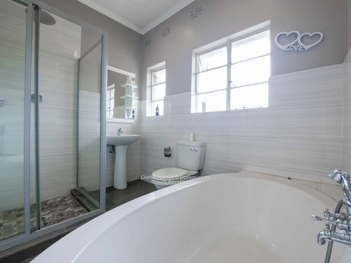Clark Properties presents this ready-to-move-in family home, perfectly positioned on a generous 1036 square meter stand, offering comfort and modern convenience. The main house features 3 bedrooms, a welcoming dining area, a lounge, and a fully fitted kitchen equipped with both electric and gas stoves, and an extractor fan. The home includes a neatly tiled shared bathroom with both a tub and shower. A separate 3-roomed cottage and 2 additional storerooms that provide flexible space for guests or home offices. Outdoor features include a reliable borehole, a 5000L water tank, a functional plunge pool, a double carport, and a handy intercom system for ease of access. Energy efficiency is enhanced by a solar geyser and a 5kVA solar system. Security is enhanced by an electric fence, electric gate, security lights, and the entire property is securely walled and gated. This is a perfect blend of comfort, security, and convenience. Contact us now to schedule a viewing.