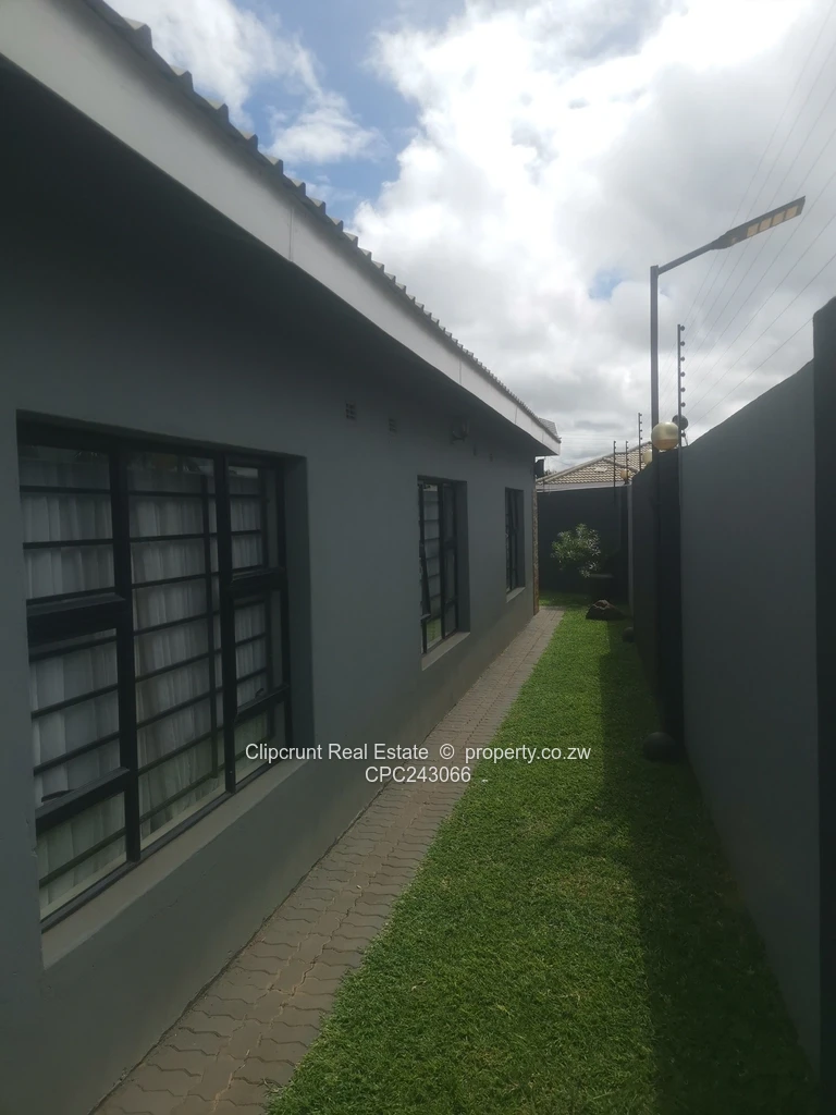 Neat and modern house in a fairly new suburb that is fully serviced with tarred roads, zesa power, water and sewer.