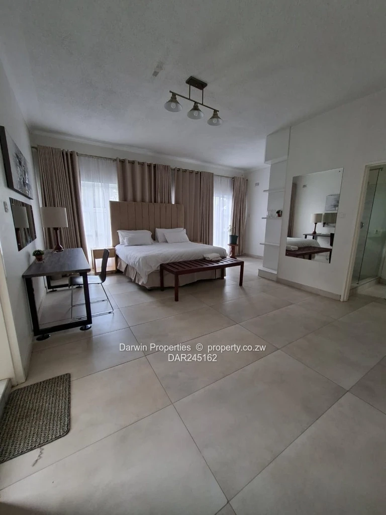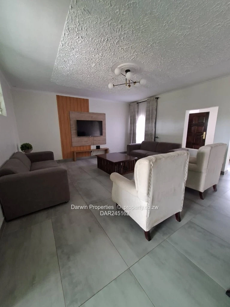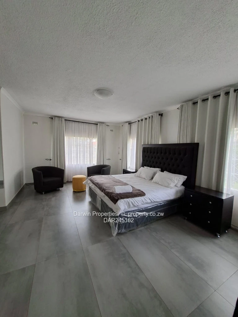 Exceptional fully furnished home in Goodhope, Harare West provides 5 bedrooms, 5 bathrooms, 2 lounges, stunning fitted kitchen set on a generous 3,000 m² stand with 350 m² of built space. The attractive single-storey features paved driveway and a manicured front lawn. A paved rear courtyard ideal for entertaining.