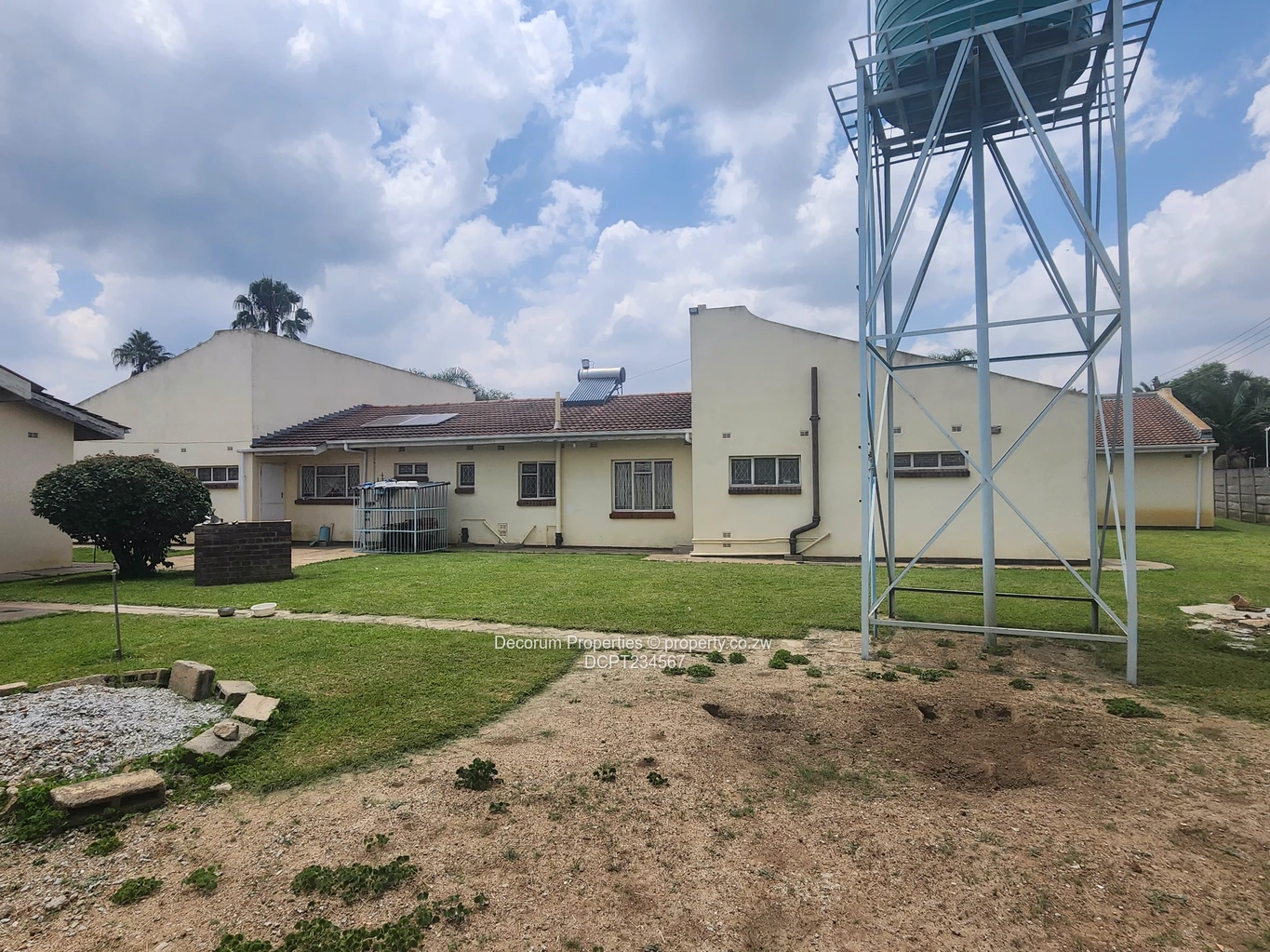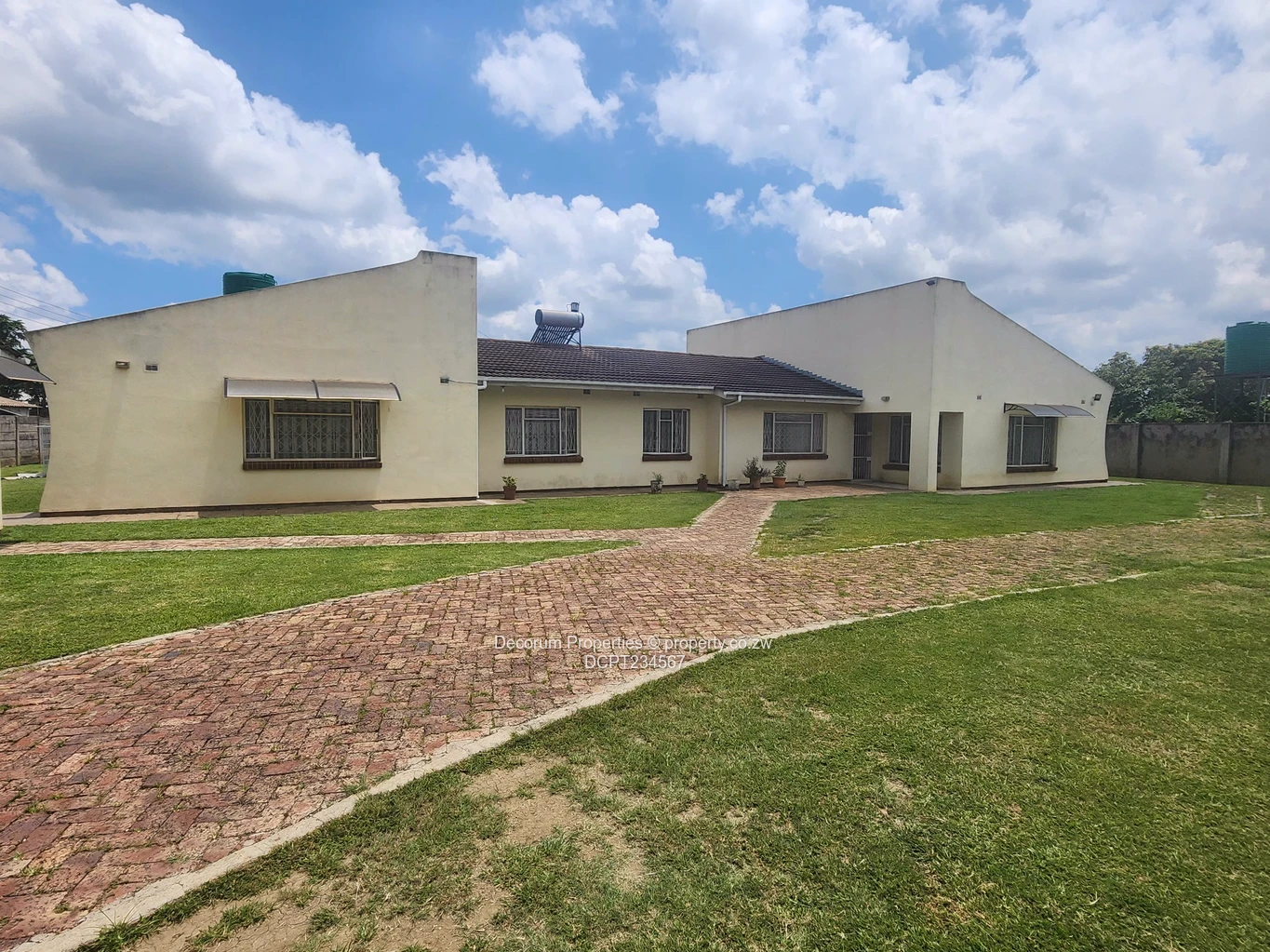 The exterior presents a neat, well-kept facade with a mix of flat and pitched rooflines and secure window grilles, while mature shrubs and planting beds create an established garden setting and add privacy. Internally the layout is family-oriented with flexible living and dining spaces, four comfortable bedrooms and two bathrooms — ideal for growing families, professionals working from home or investors seeking rental income. Located close to schools, shops and main transport routes in Emerald Hill, this property combines convenience, security and substantial landholding in a sought-after Harare West neighbourhood. Contact us to arrange a viewing and explore the development possibilities this prime site offers.