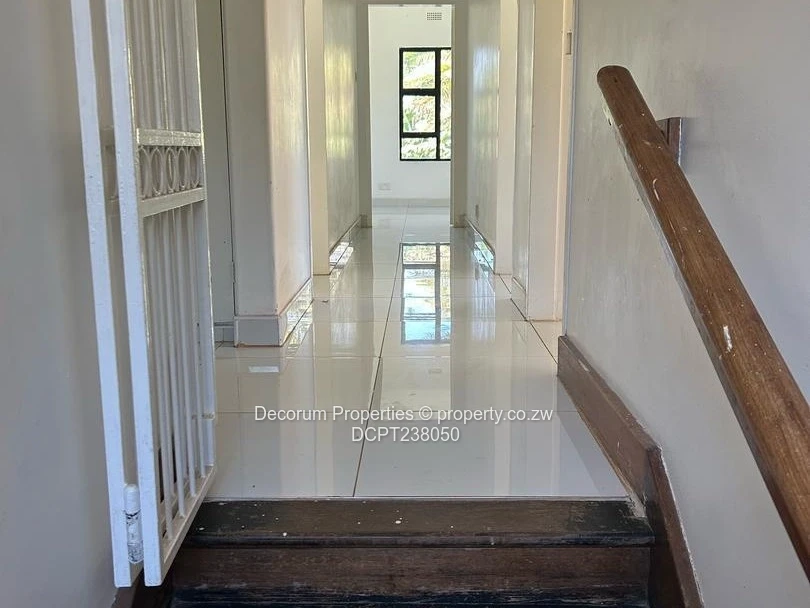 Suits offices, 5 bedroomed double storey house on 4 800 Sqm, borehole, walled and gated. Title Deeds available.
