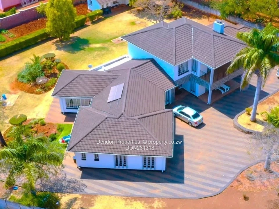 Property Features: The upstairs area consists of 2 bedrooms, including a master bedroom with an en-suite bathroom, walk-in closet, and balcony. The ground floor features 2 lounges, a dining area, kitchen with fittings and pantry, double lock-up garage, washing and ironing room with sink, outside storeroom, study room, 3 bedrooms with built-in cupboards, 1 with an en-suite bathroom, separate toilet with sink, and combined bathroom. The property is equipped with a borehole, small solar backup system, electric geyser, and is walled and gated with a guard room. A separate cottage with 3 rooms, comprising 2 bedrooms, kitchen, and combined bathroom, outside washing sink, garden space, and parking is also available. Stand size is 4000m², walled and gated. Title deeds.