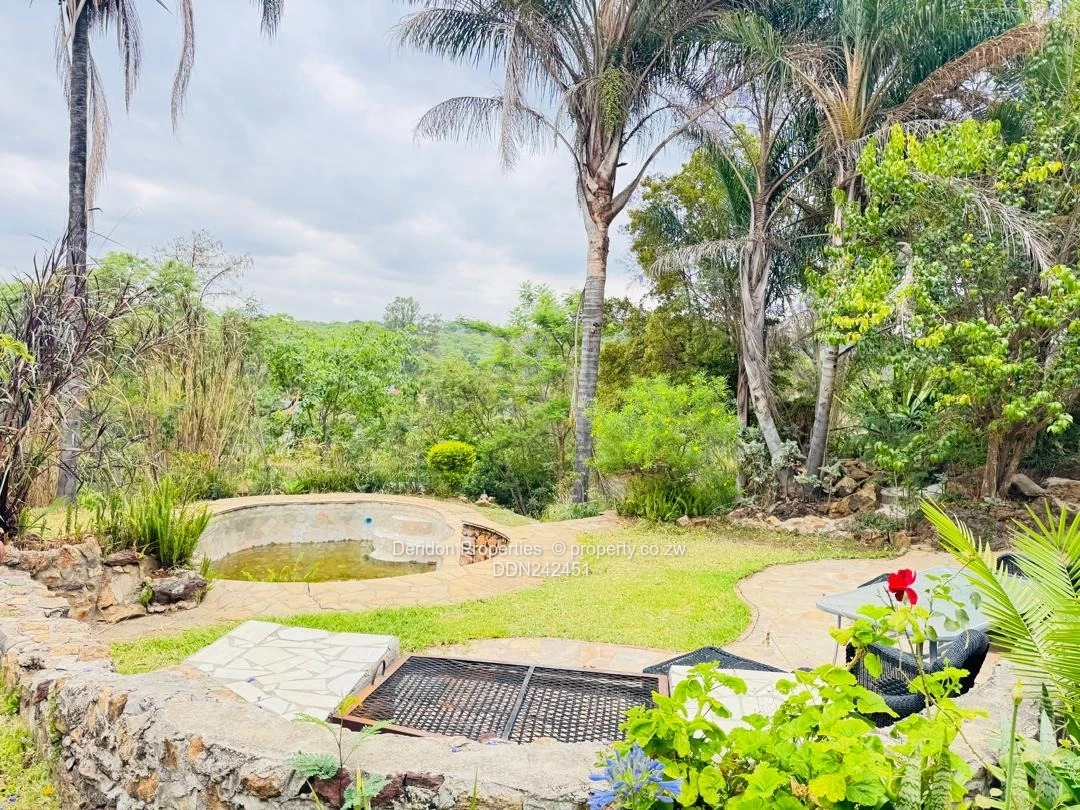 - Glitter-stone pool, borehole, 5?kVA solar, alarm system