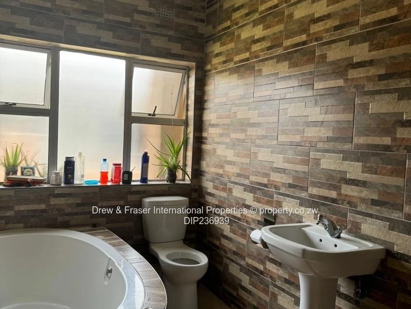Discover a beautifully maintained single-level family home in Arlington, Harare South — set on a generous 2,100 m² stand with 450 m² of living space. The house welcomes you with a wide paved driveway, covered carport and a manicured front lawn and garden framed by secure boundary walls and access control. Inside, bright tiled living spaces include a cosy lounge with a fireplace and large windows that open to a covered verandah and an adaptable entertainment area fitted with a games table — perfect for family gatherings. The fitted kitchen is modern and practical, boasting ample cabinetry, a central island and easy flow to the dining/entertaining zone. Four well-proportioned bedrooms include a main en-suite; three contemporary bathrooms display stylish tiling and fittings. Practical extras are a study/office, a dedicated home gym/fitness area, good ZESA supply, municipal water supplemented by a substantial water tank and pump, internet connection and a burglar alarm with 24-hour security and gated access. This move-in-ready home combines comfort, functionality and security in a sought-after Harare South location — ideal for families seeking space to live and entertain.