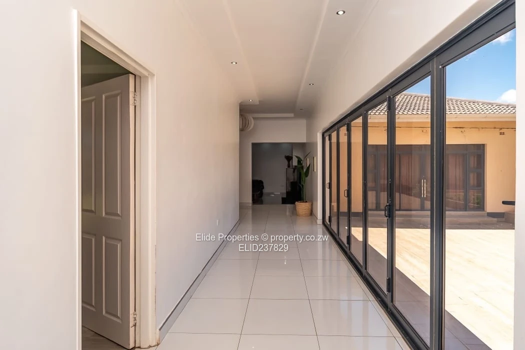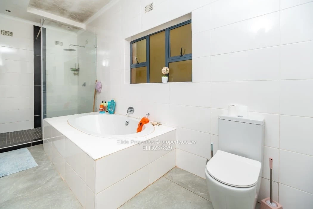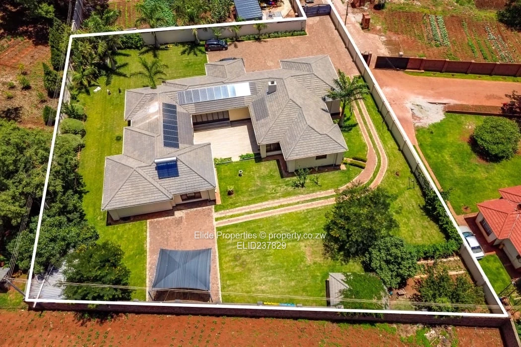 This executive 4-bedroom residence in Geltwyn Park, available for sale, featuring a master suite with an ensuite bathroom and a huge walk-in dresser, 2 additional bedrooms sharing a bathroom, with the 4th bedroom using the the family bathroom, and a guest cloakroom, alongside a lounge with fireplace, a formal dining room, and a modern fitted kitchen with breakfast nook; the property further benefits from a double lockup garage, a prolific borehole with water tank, solar geysers, a 5KVa solar backup system, and manicured gardens.