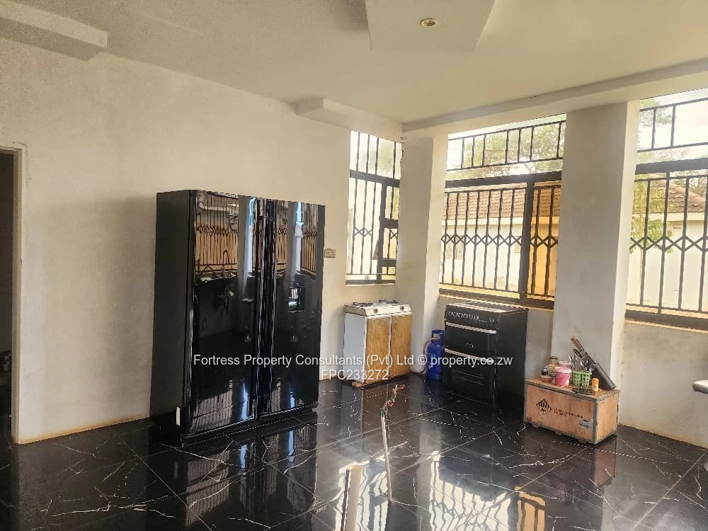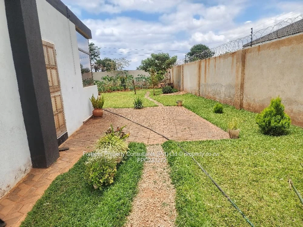 Practical extras designed for Harare living: borehole and elevated water tank already in place for reliable supply, solar system for reliable power supply, plenty of outdoor space for a pool or further landscaping, and secure perimeter walling. This property is ideal for families seeking a stylish, move-in-ready home with scope to personalise fittings in kitchen and built in cupboards in bedrooms.