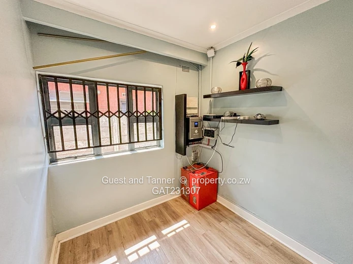 This luxurious 3-bedroom cluster home in Arlington Estate, Harare, offers a serene living experience. The property features a well-built and fitted open-plan kitchen, a beautiful lounge, and an enclosed verandah. The layout includes a main bedroom with an ensuite and a small extra room, plus two additional bedrooms sharing a common bathroom. With a stand size of 450sqm and ready-for-title ownership, this property is priced at $180,000. Key features include a prolific borehole and a 5,000-liter water tank, ensuring a reliable water supply. For more information or to schedule a viewing, contact Charity.