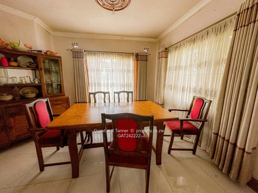 Guest and Tanner presents this 4-bedroom Marlborough house near Harare Drive on a 2002m² fully serviced stand. The home features tiled floors and ceilings throughout, 2 lounges, a dining area, and a spacious kitchen with pantry (cupboards still to be fitted). Three bedrooms require BICs, while the main bedroom has an ensuite (wall tiles pending) and walk-in closet. Extras include a double lock-up garage, prolific borehole, 3000L tank, 3kV solar backup, and partial walling. Title Deed available. Price: $300,000.