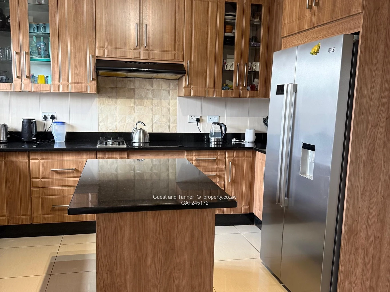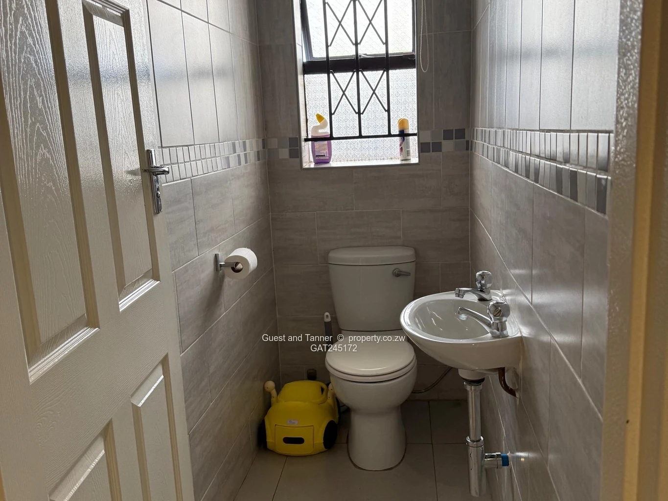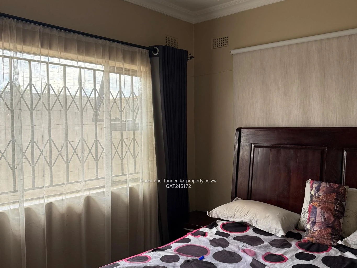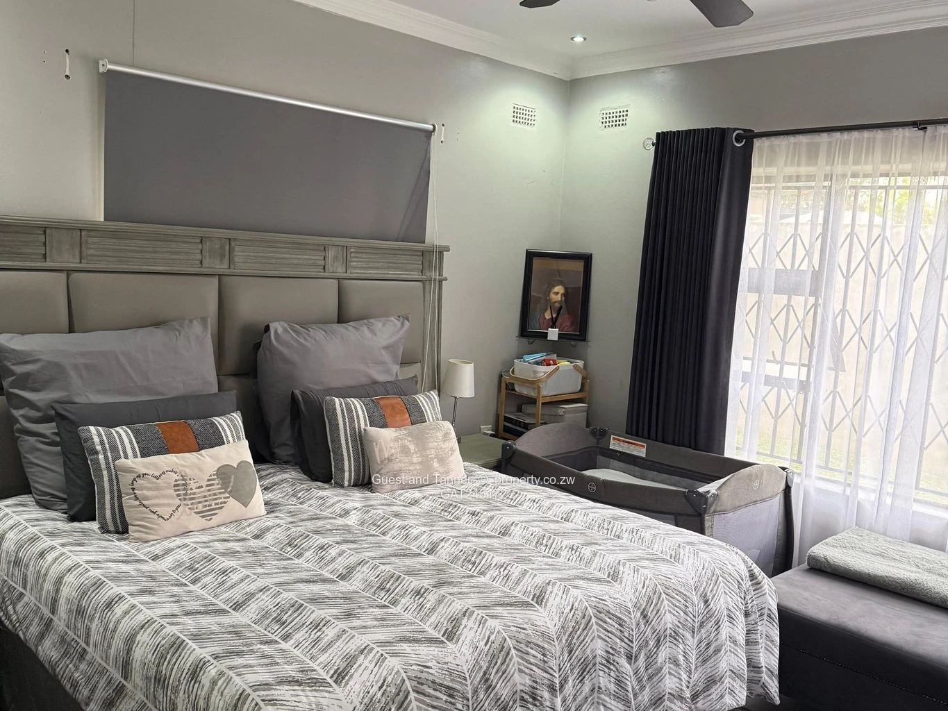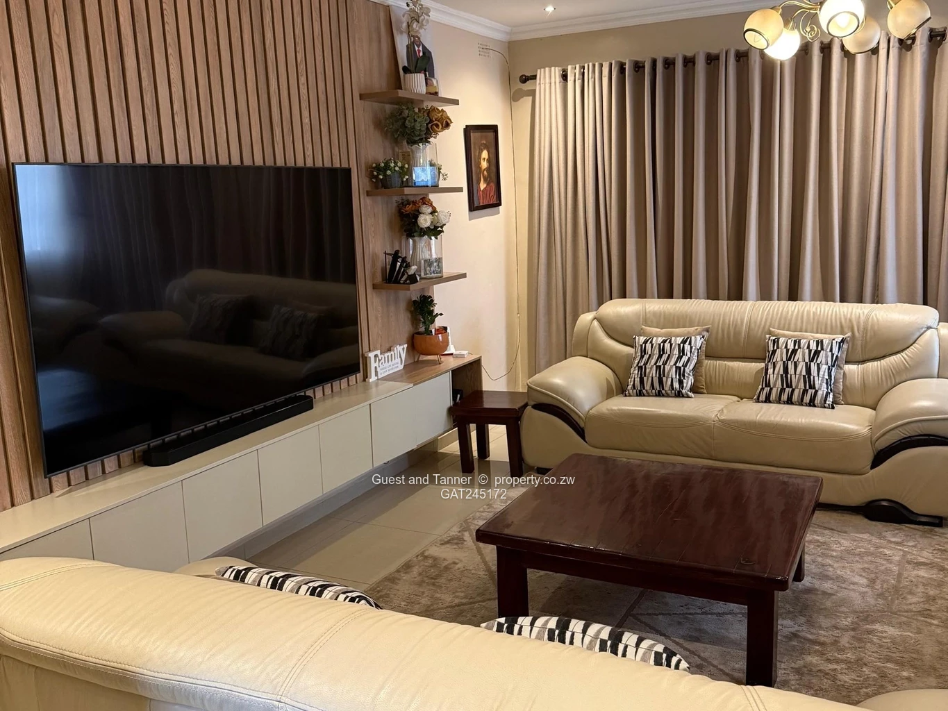 Enjoy a bright lounge and dining room, complemented by a modern fitted kitchen designed for everyday comfort and entertaining. The property is fully set up for Zimbabwean conditions with a reliable borehole and a 5kVA solar power system, ensuring water and electricity security year-round. A secure title deed rounds up ownership.