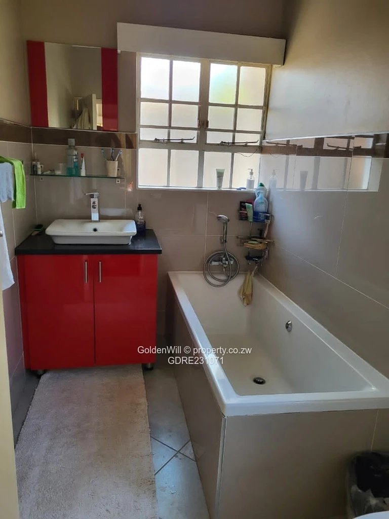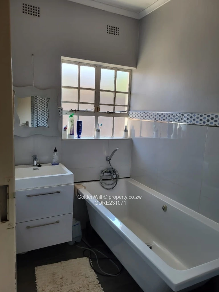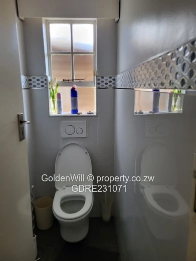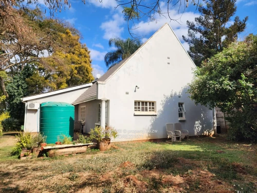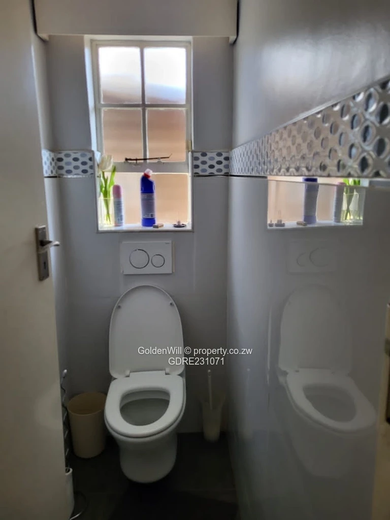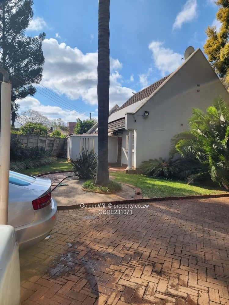 Property is sitting on 1360sqm in Westgate behind America Embassy with 2 lounges, dining, morden kitchen, 3 bedroom with master bedroom ensuite, 2nd bath and shower with separate toilet. Detached one bedroom cottage with kitchenette own toilet and shower. Well manicured garden, with prolific Borehole with 5000l tank. Property has 5kva solar system, electric gate, cctv, intruder alarm, and 360° electric fence.