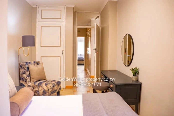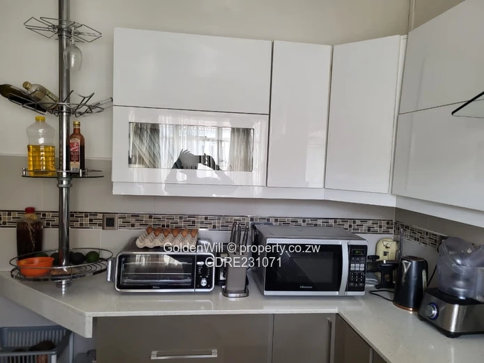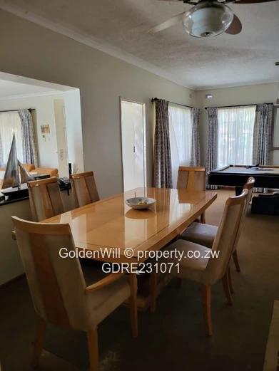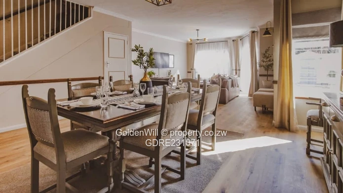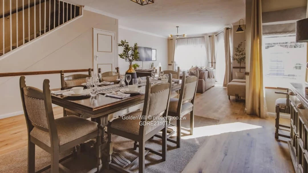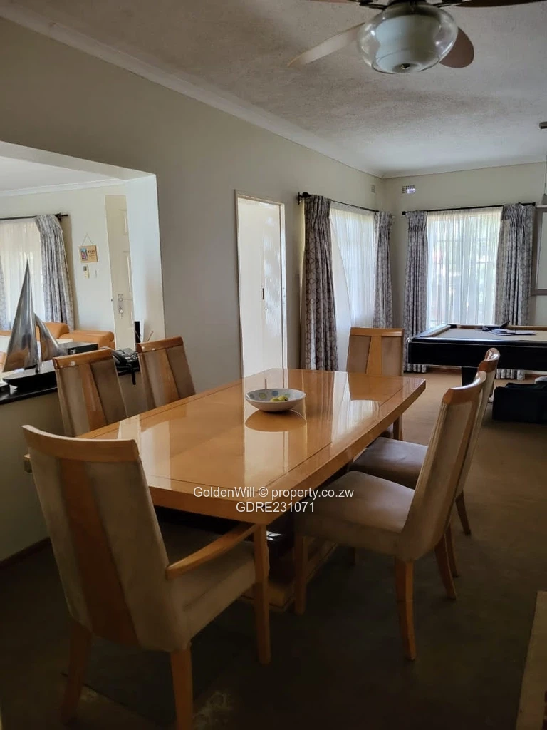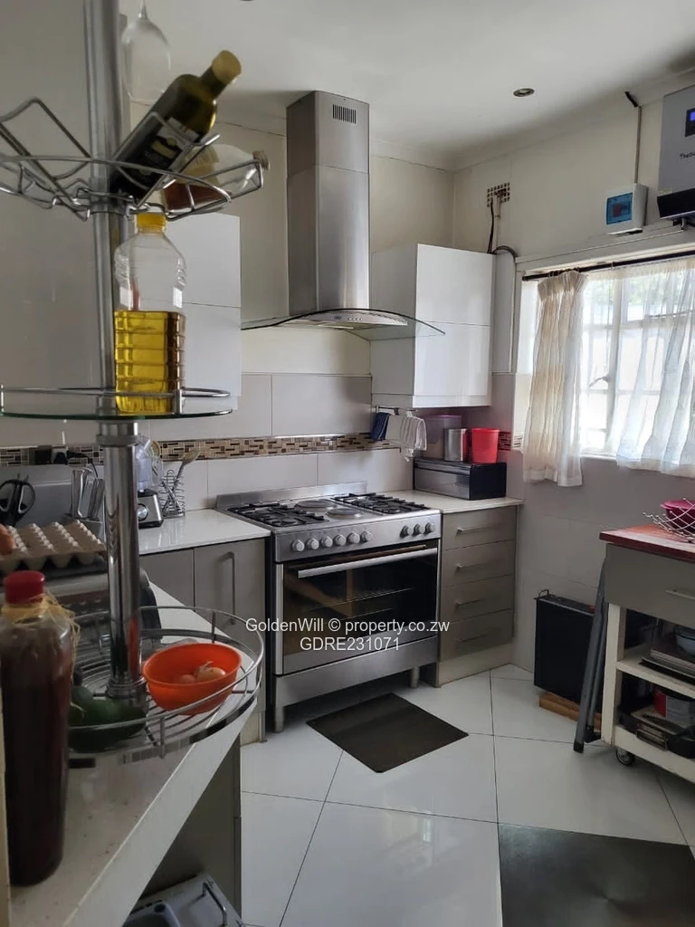 Property is sitting on 1360sqm in Westgate behind America Embassy with 2 lounges, dining, morden kitchen, 3 bedroom with master bedroom ensuite, 2nd bath and shower with separate toilet. Detached one bedroom cottage with kitchenette own toilet and shower. Well manicured garden, with prolific Borehole with 5000l tank. Property has 5kva solar system, electric gate, cctv, intruder alarm, and 360° electric fence.