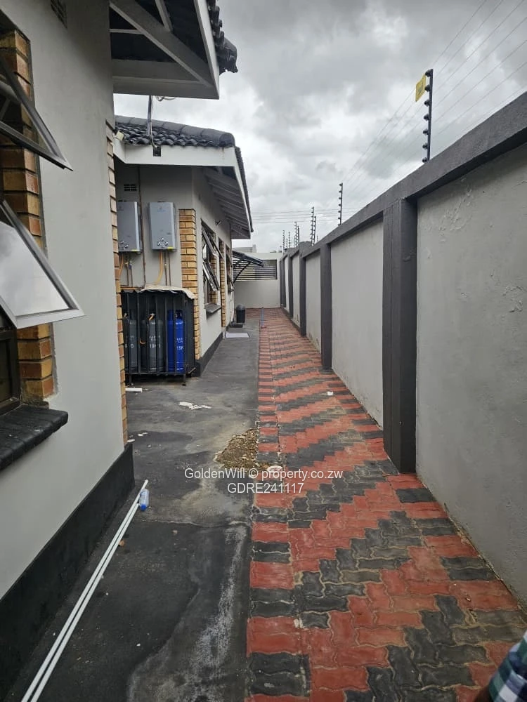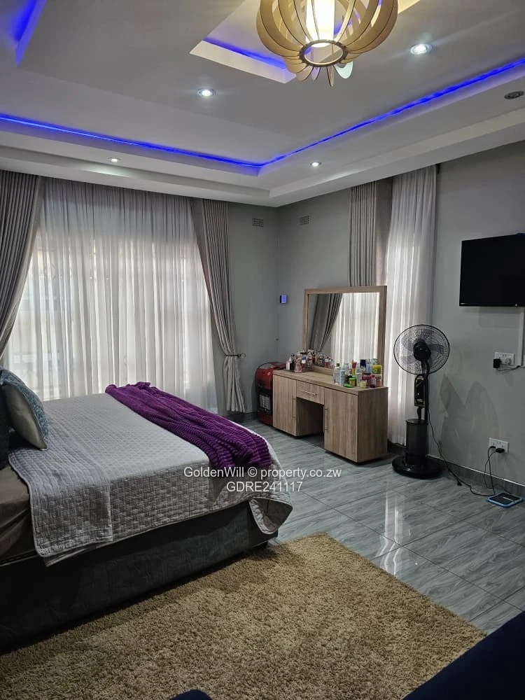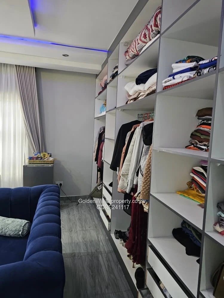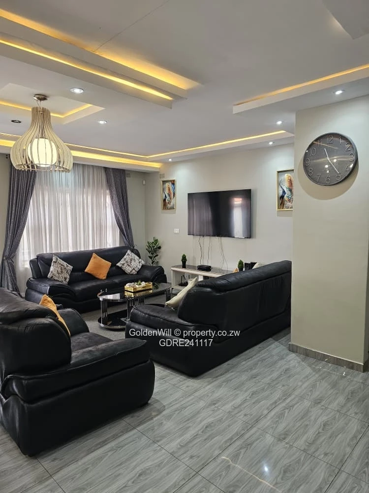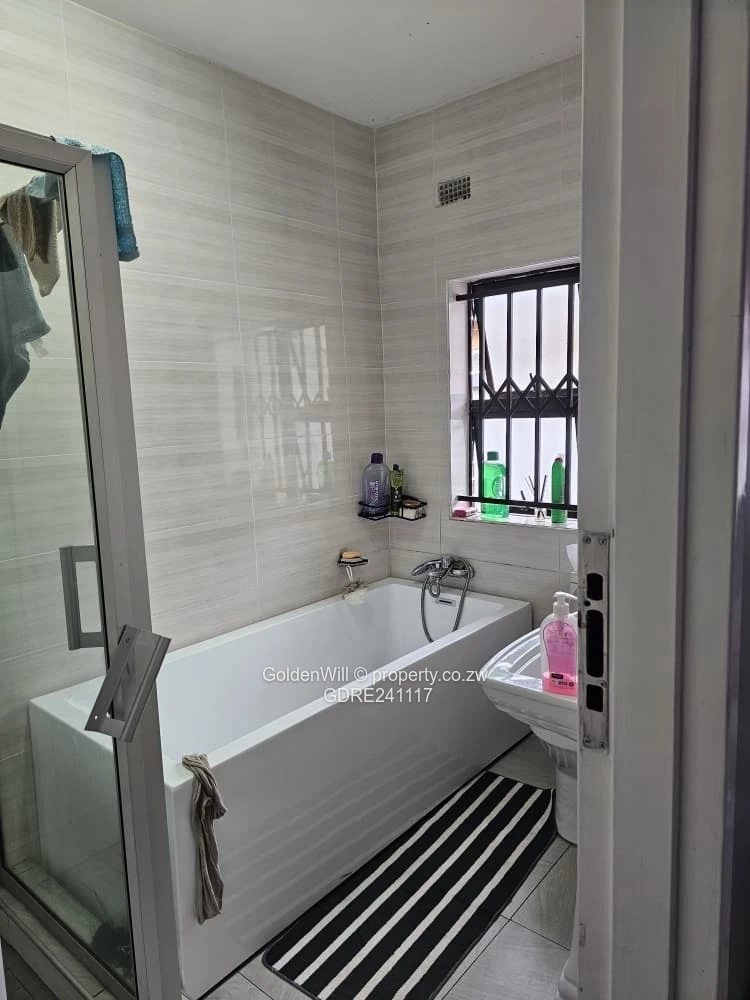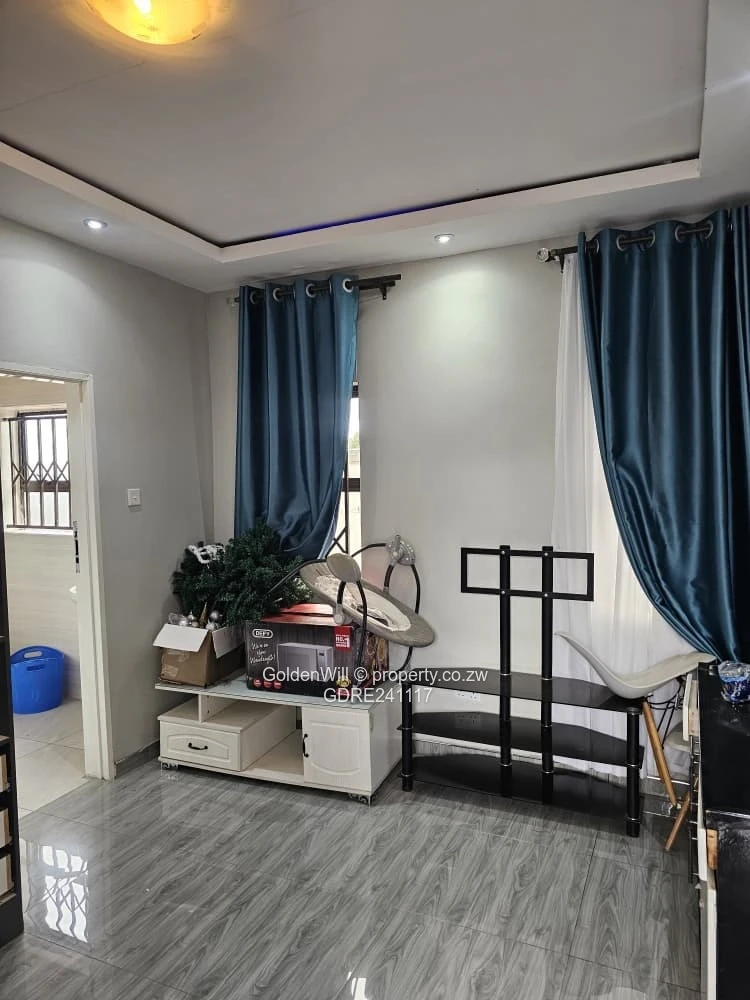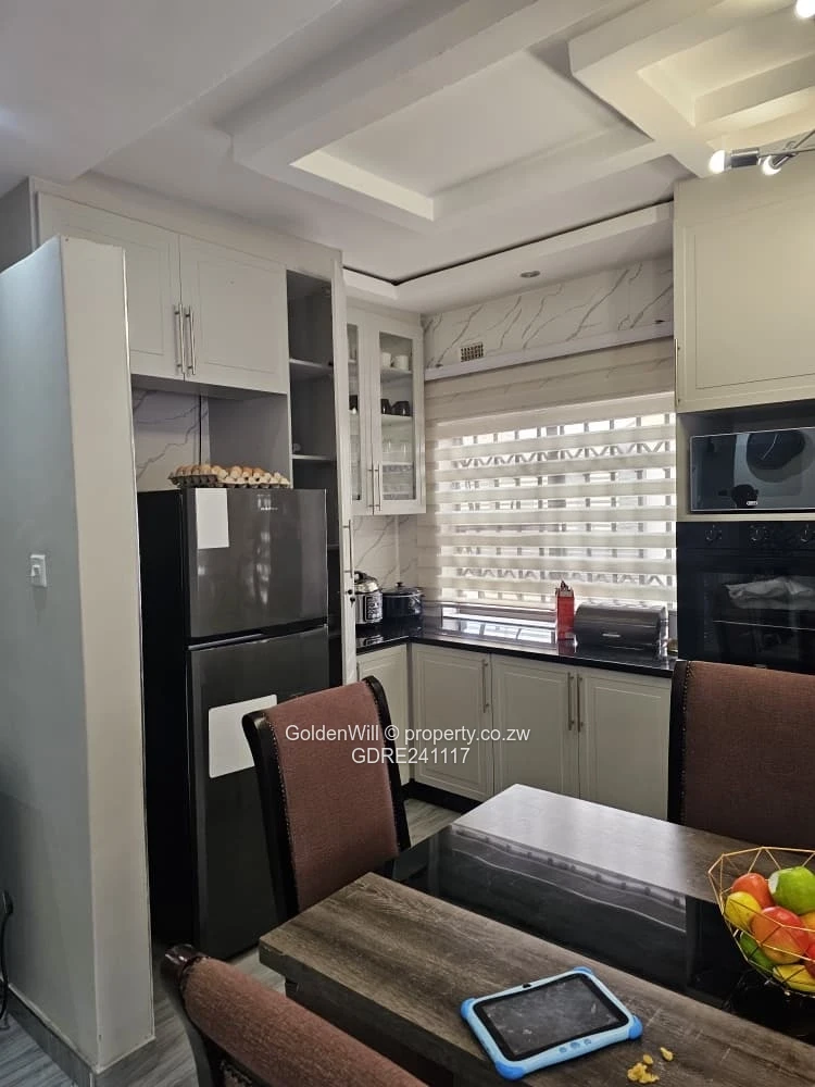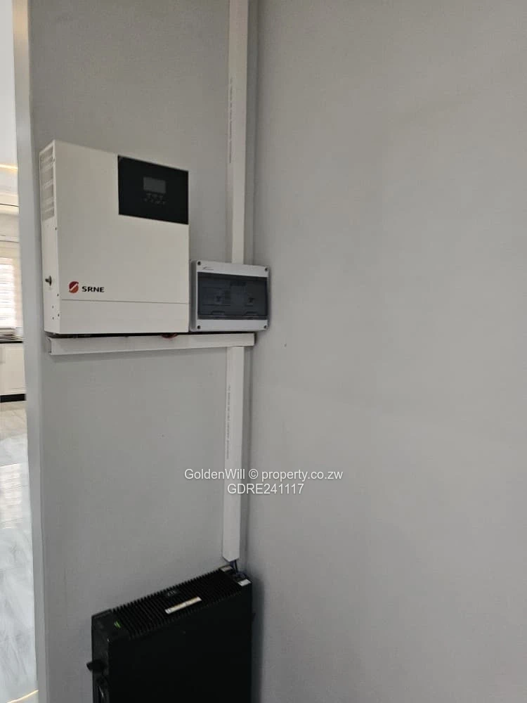 Tiled,ceiling open plan kitchen,dining, lounge,common bathroom and toilet x2, ensuite, guest room with own bathroom, Gas geyser x3, 3kv solar backup, SLUG, Carport , borehole tank, pressure pump. Walled and electric gate. Deed