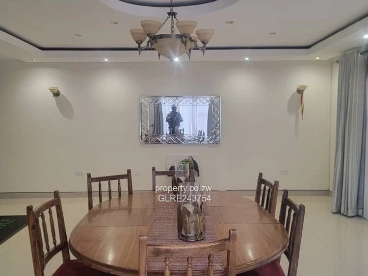 Inside, the living areas showcase high ceilings, recessed lighting and a central chandelier, large windows dressed with full-length curtains and glossy tiled floors — bright, comfortable spaces ideal for entertaining or family living. Air conditioning units are already installed, and the property includes an operational borehole for reliable water supply. The layout and scale offer flexibility for multigenerational living or home office space, and the additional outbuilding could serve as staff quarters or a workshop. Located in sought-after Pomona, this home blends quality finishes, security and outdoor space in a prime Harare North location. Contact us to arrange a viewing.