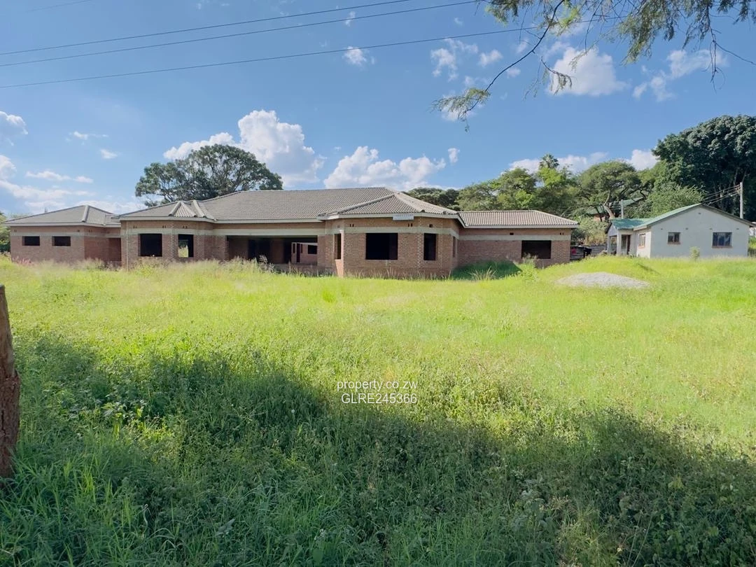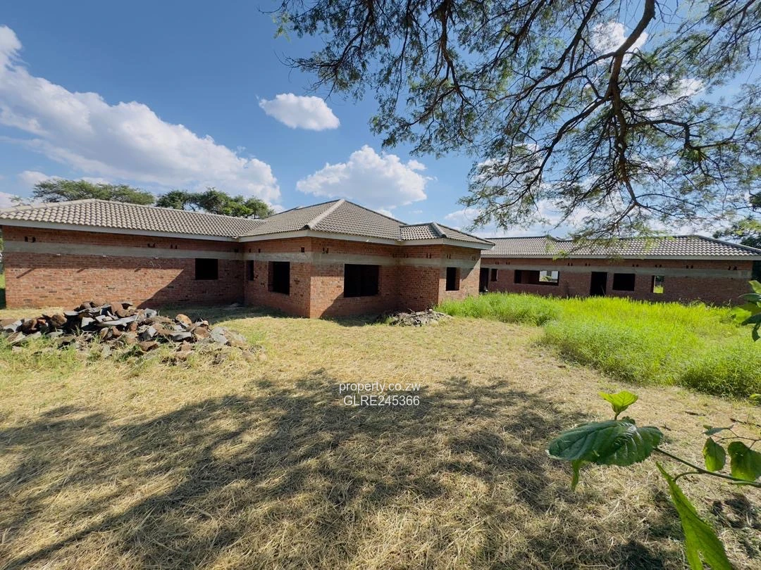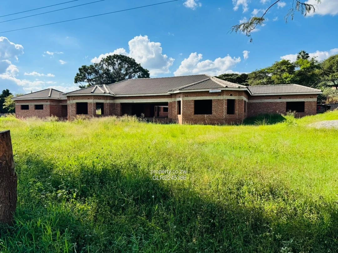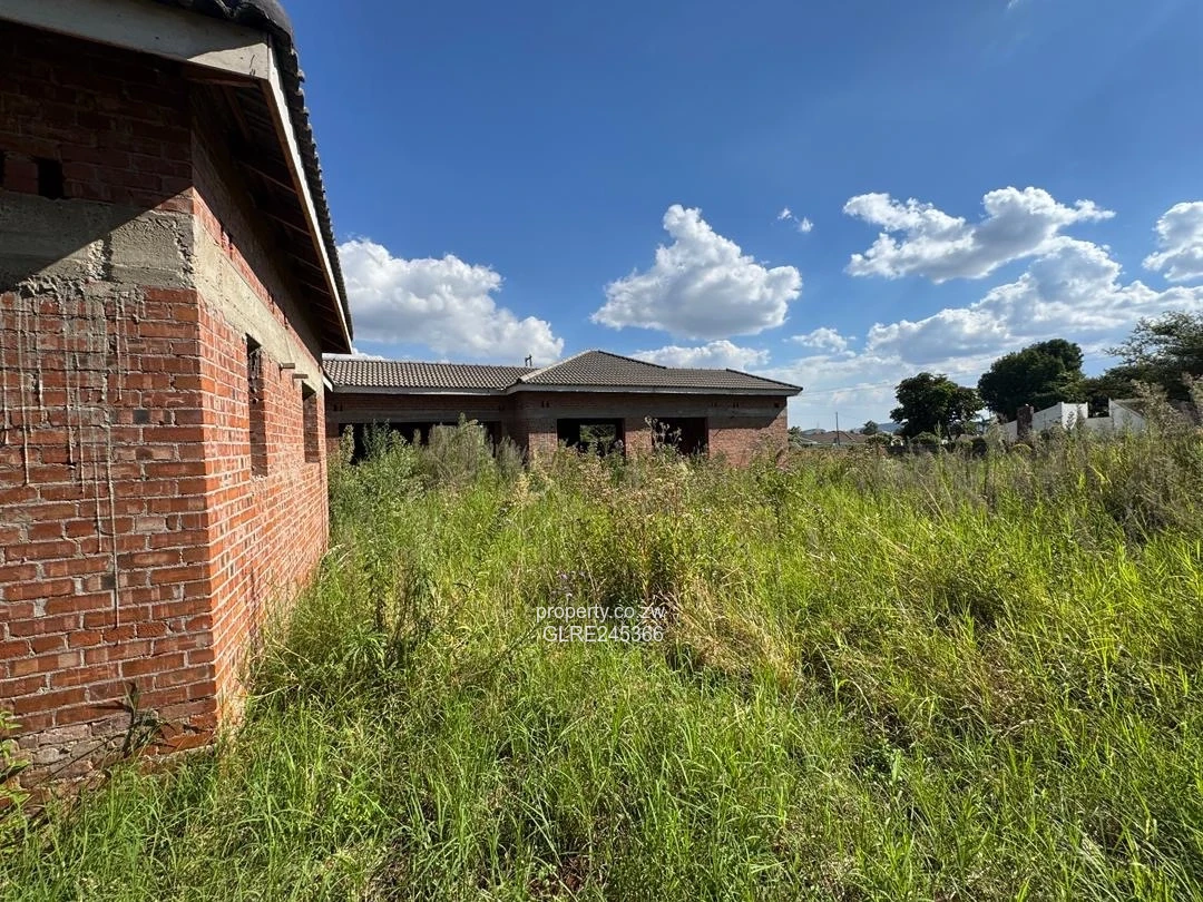 Rare opportunity in Bluff Hill, Harare West: a substantial 1-acre property with a 700 m² shell of a modern single-level home awaiting your finishing touches. The U-shaped brick structure, shown in the photos, already has roof coverage and a generous covered verandah that wraps the living areas—ideal for indoor-outdoor entertaining. Inside, wide open-plan spaces with exposed timber roof trusses and solid brick walls give you a clean slate to create expansive reception rooms, an entertainer’s kitchen and a private bedroom wing comprising 5 bedrooms and 3 bathrooms.