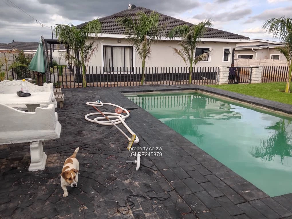 4 Bed, Study, ensuite, open Plan, swimming Pool, Gazebo, Outside Shower Plus toilet, Reliable Zesa, 3kva backup, Solar/Electricity Geyser, CCTV, Alarm System, Electric gate, intercom, Telone Fibre, also Liquid Fibre cables, Shared bore hall, water well also connected to tanks with water all year round, 2 X 5000L water tanks with booster pump, developers session (ready for tittle)