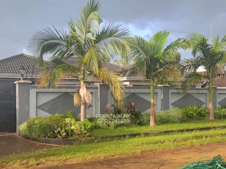Stylish, secure family home in Westgate, Harare West — a rare offering on a 1,000 m² stand with a generous 550 m² of living space. This five-bedroom, two-bath residence sits behind a modern rendered boundary wall with decorative panels and a solid black vehicular gate; as seen in the photos, the frontage is beautifully landscaped with a neat lawn strip and mature palm trees that create instant kerb appeal. The tiled roof peeks over the wall suggesting a substantial, well-proportioned interior layout ideal for family life and entertaining. Practical extras include a reliable borehole for consistent water supply and ample off-street parking behind the secure gate. Perfect for growing families or buyers seeking a spacious home in a convenient Westgate location — arrange a viewing today to explore the roomy living areas, bedrooms and outdoor potential.