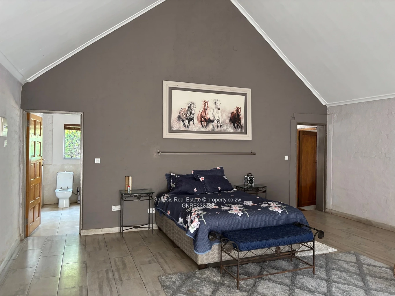Also includes a charming double-storey cottage with a lounge, kitchen, and upstairs bedroom. Excellent water supply from a prolific borehole producing 10,000 litres per hour. 4-roomed staff quarters with bathroom complete this well-appointed prop