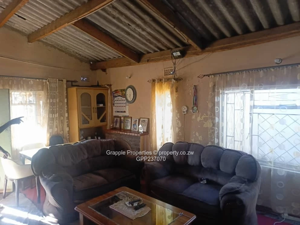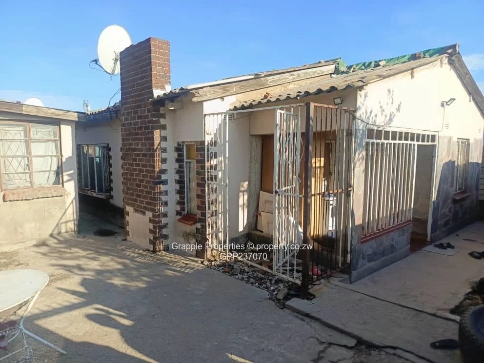 4 bed-roomed house with a spacious master bedroom with built-in cupboards, kitchen, spacious lounge, inside toilet , 2 roomed cottage, outside toilet and sink, fowl run (400 birds), walled and gated, title deeds available, sitting on 261m2.