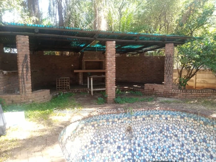 A residential dwelling of brick under asbestos consisting of 4 bedrooms, main bedroom with ensuite, kitchen, lounge and dining, bathroom and separate toilet. Front verandah. A swimming pool and braai area. A cottage with one bedroom, kitchen, bathroom and toilet. A garage. Walled and Gated. Stand size 2100sqm. Title Deeds Available. Price Guide: US$80 000