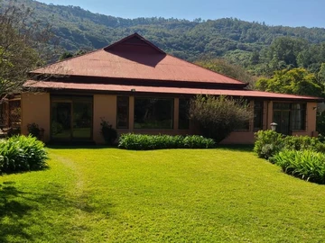 A well appointed house located in a tranquil area where nature blends with life.Main structure of brick under iron sheets,entance hall ,veranda strip,office,tv room and double lounge,fitted kitchen ,walk-in pantry,three bedrooms (two with ensuites).Cottage: Open plan lounge and kitchen area,two bedrooms with ensuites.Servants quarters.Lockup garage ,storeroom and workshop area.Sparkling pool and well maintained garden.Main homestead fenced and gated.Stream (non perennial)