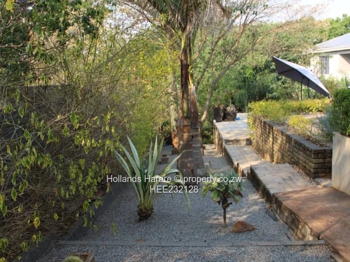 Sunny deck leading to sparkling swimimng pool. Well maintained lush garden surrounding the home. Secure walled property with electric gate & alarm system.