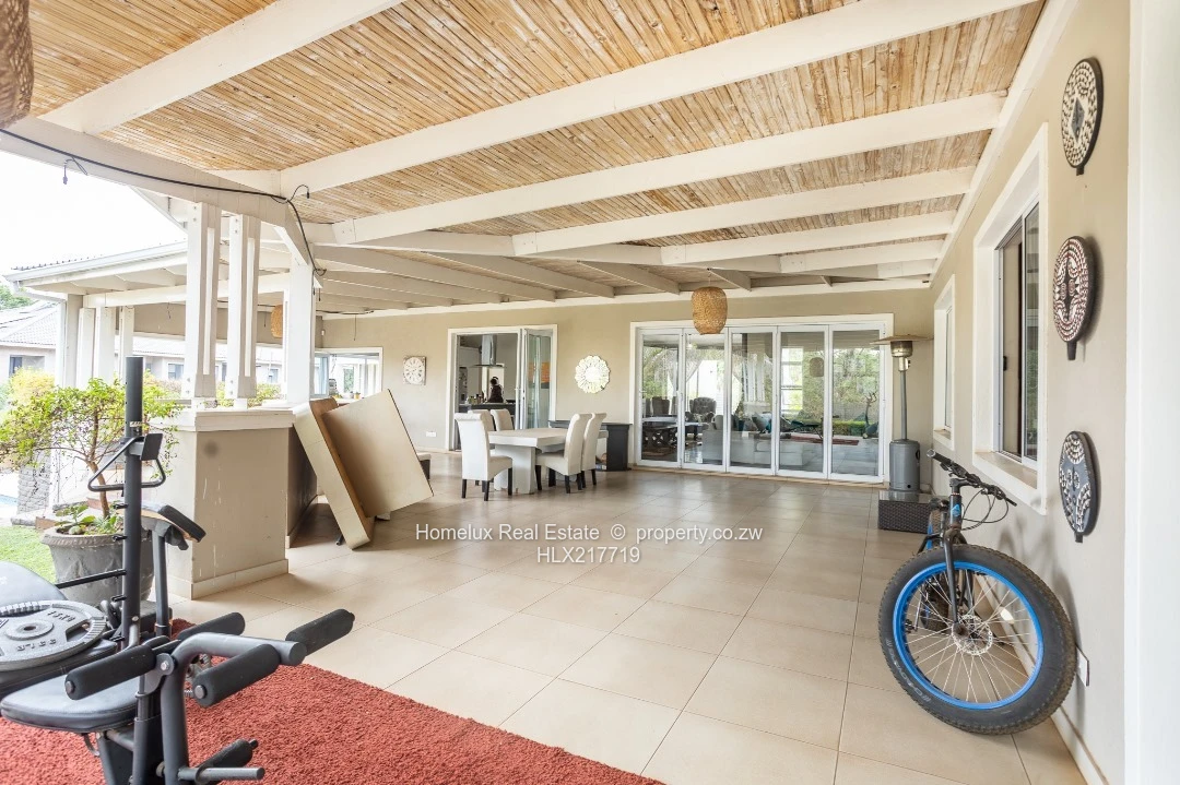 The home is ideal for entertaining, with an outside patio, a bar area, and an open entertainment space. A swimming pool is in place, along with an incomplete pool house (gazebo for outdoor entertainment).