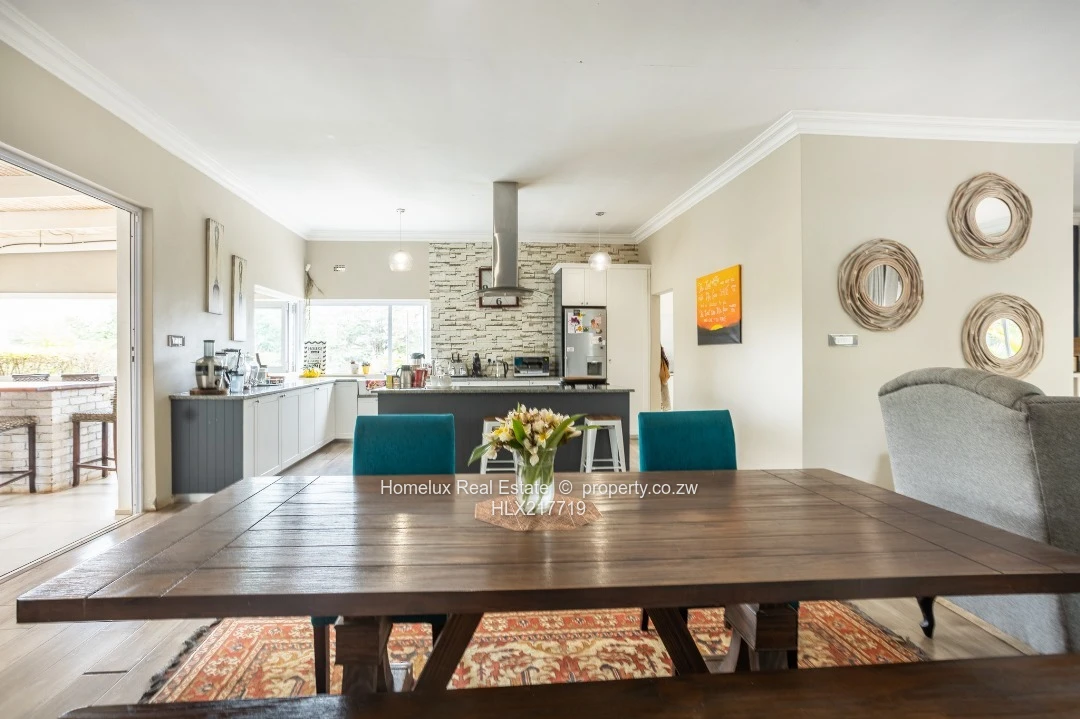This property offers spacious living with a range of functional features. It includes a double lock-up garage, a scullery, pantry, and a fitted open-plan kitchen. The lounge comes with a fireplace and flows into a dedicated dining area. There's also a second lounge (sitting room) for added comfort.