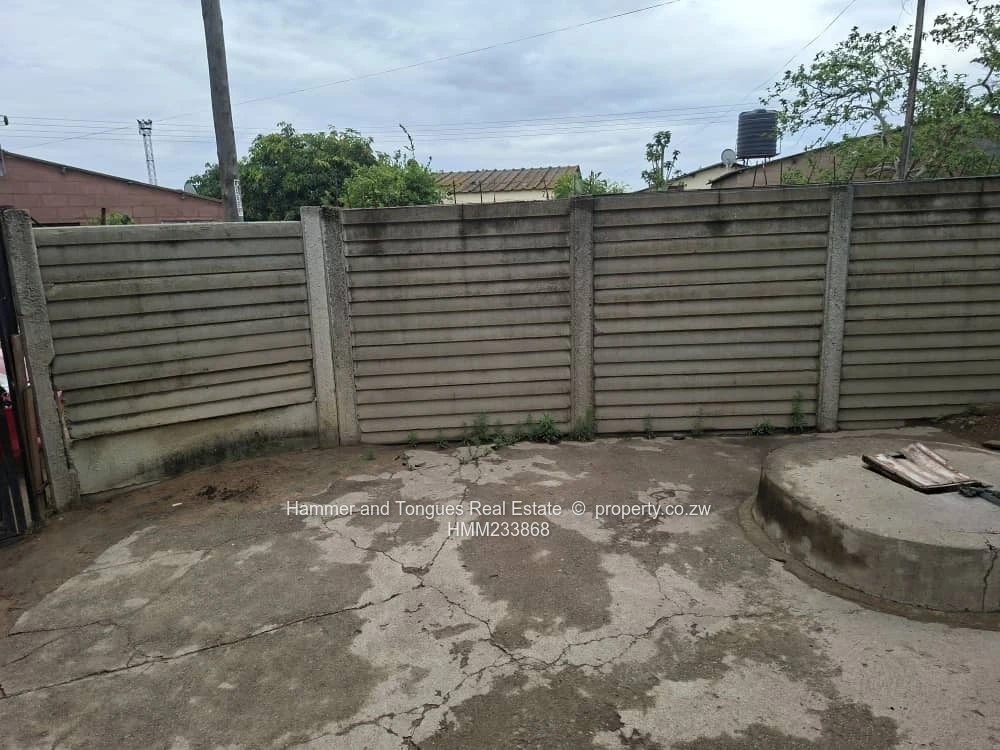Charming starter home in the heart of Chitungwiza — a solid 3-bedroom, 1-bathroom house sitting on a compact 193 m² stand with a 100 m² building footprint. The property greets you with a secure, lockable gate and perimeter walls (see exterior photos), and a spacious paved compound ideal for parking or entertaining. The exterior shows a neat single-storey footprint with potential for a small garden or expansion.