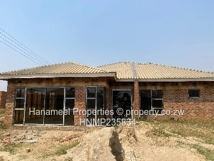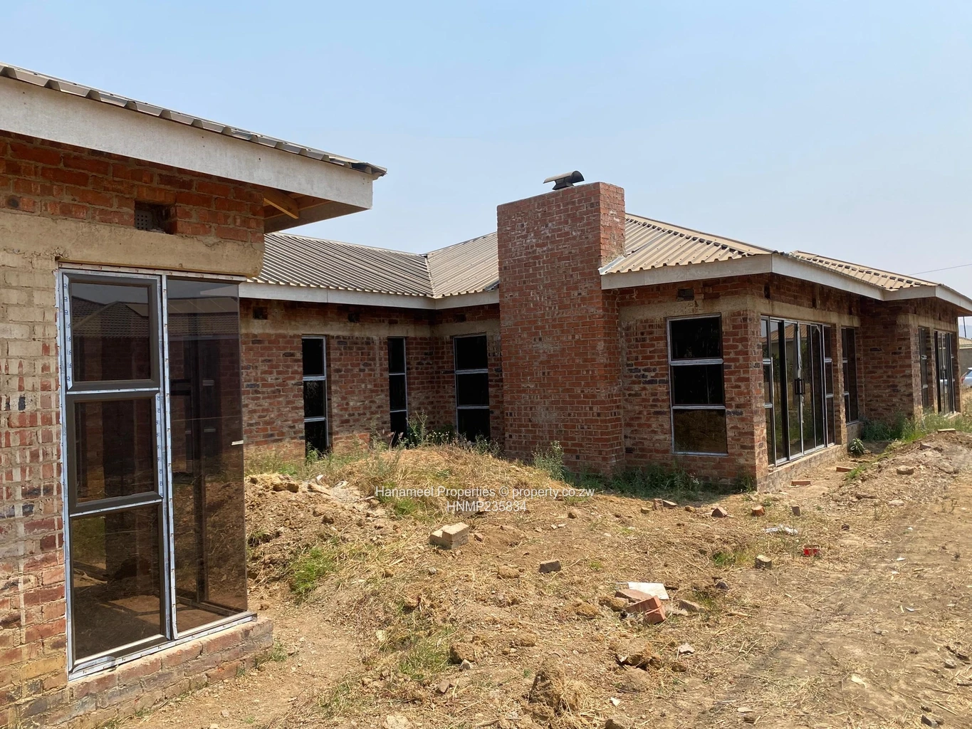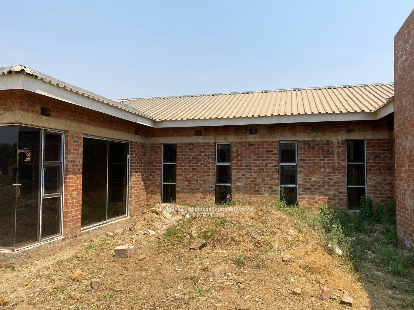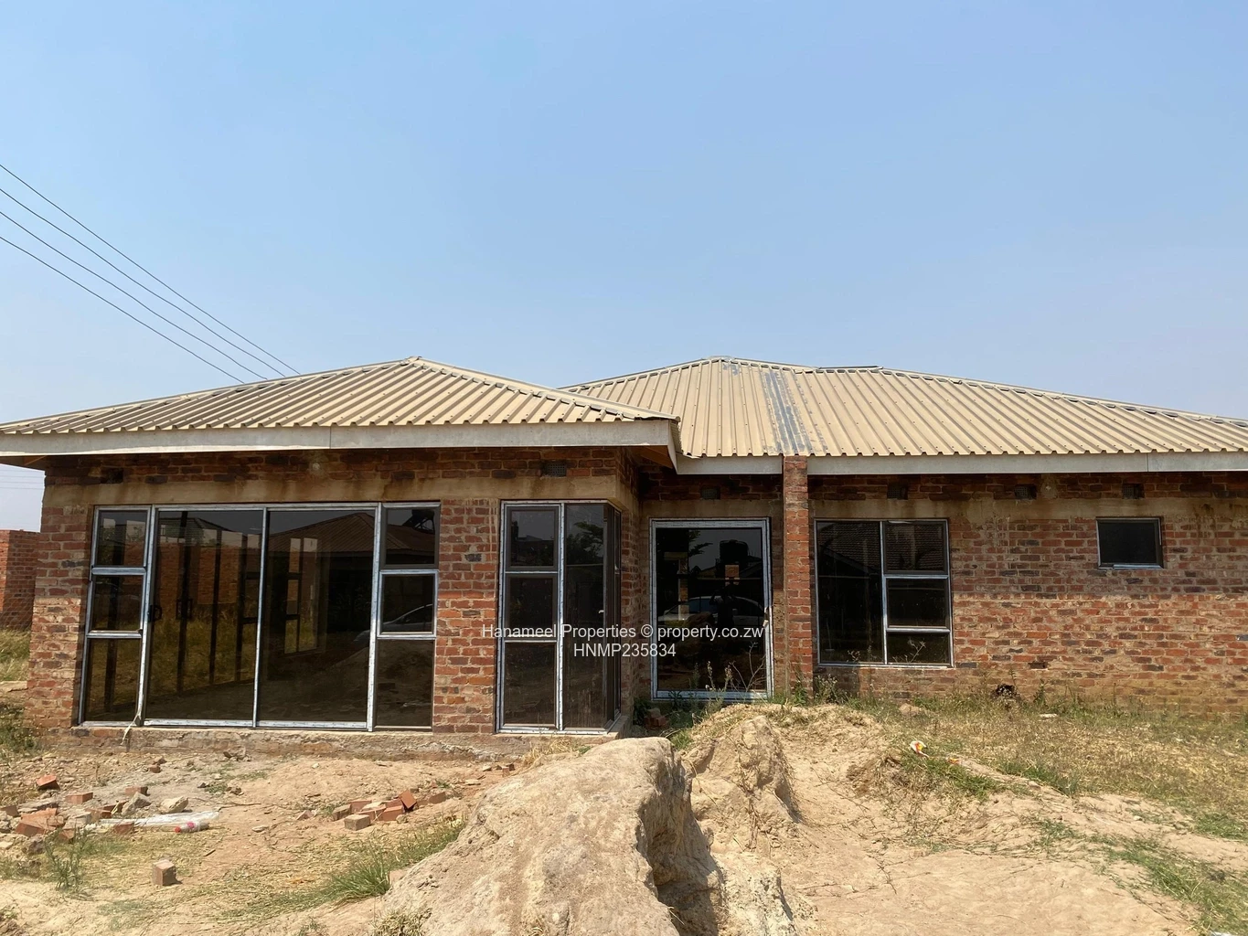 Incomplete 3 Bedrooms house main bedroom ensuite, 2 Lounges, spacious kitchen and large dining room, roofed but in need of finishes. Serviced with ELECTRICITY, a well and gravel roads on 880m2, fenced and gated developer cession