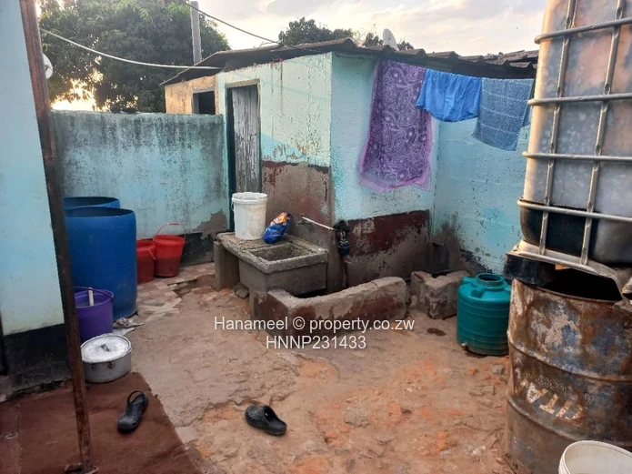 Outside you’ll find a tidy yard with municipal water supply, an on-site wash area, water tanks/IBC for storage and a small outbuilding ideal for storage or a utility room. The property benefits from a reliable ZESA connection and a functioning sewer system. The front/verandah area provides sheltered outdoor seating and a clear, walled perimeter gives privacy and security.