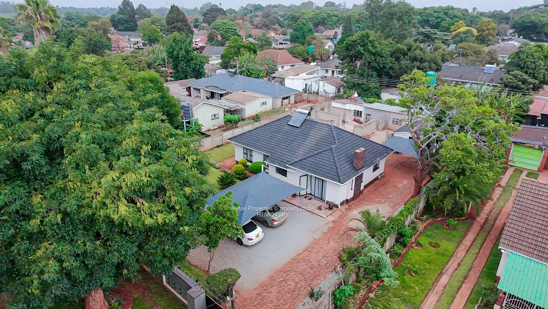 Charming 4-bedroom, 4-bath family home in sought-after Hillside, Harare South — sitting on a generous 1,160 m². This attractive single-level residence is surrounded by mature trees and neat gardens, offering instant street appeal. The property enjoys a secure walled perimeter, a long paved driveway and covered double carport with space for visitors. The home features well-proportioned bedrooms which are all en suite, a comfortable lounge and dining layout that opens to private outdoor areas ideal for entertaining or adding a pool.