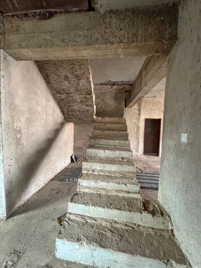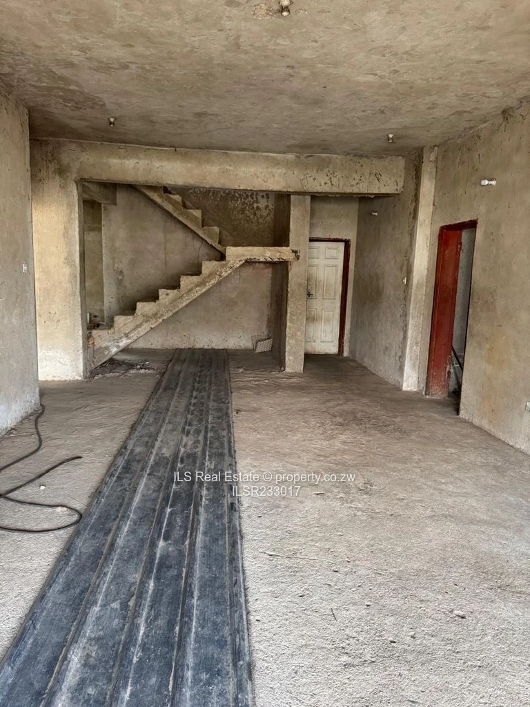 Spacious two-storey family home for sale in Crowhill Views, Harare North — a solid unfinished shell offering exceptional value on a 1,000 m² stand with 750 m² under roof. The property features six generous bedrooms and four bathrooms, a strong reinforced concrete staircase and structure, wide open-plan living areas with exposed roof trusses and large windows that flood the space with natural light (as seen in the photos). Outside, a private walled garden and tiled swimming pool provide a great entertainment area and excellent scope to create a resort-style backyard; the balcony off the upper level looks down over the pool and neighbourhood views. Internally the house is ready for finishing touches — plastering, ceilings, tiling and fittings — allowing you to personalise finishes and add immediate value. The layout suits extended families or investors seeking a high-yield renovation project in a well-located Harare North suburb, close to local amenities and main routes. Strong concrete bones, secure perimeter walls and spacious rooms make this a rare opportunity to complete and move into a bespoke family home. Contact us today to arrange a viewing and see the potential first-hand.