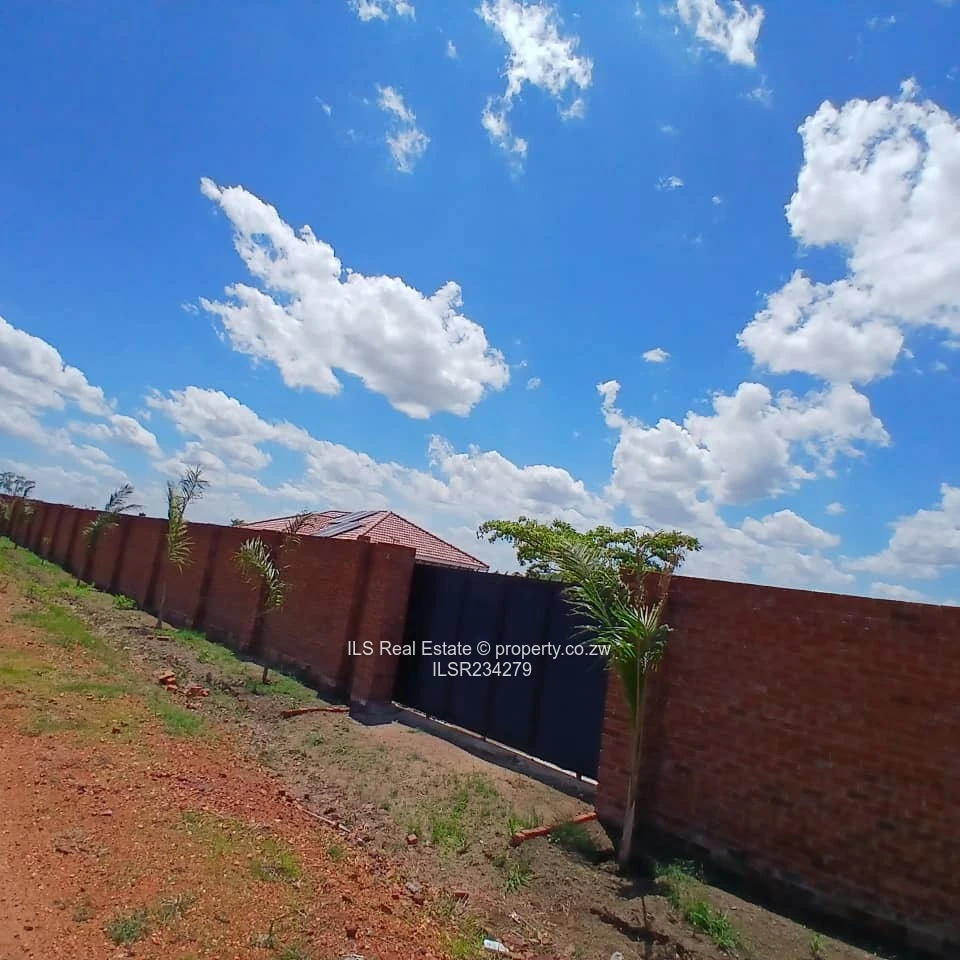 Spacious 3-bedroom, 2-bathroom family home on a full 1.00-acre stand in Kadoma — a perfect blend of comfort and potential. The generous 300 m² layout provides roomy living spaces and a practical floorplan ideal for families or investors. As seen in the photos, the house presents a striking red-tiled roof and wide covered verandah supported by solid pillars, creating a welcoming entrance and shady outdoor living area. Exterior finishes combine smooth light-grey plaster with attractive exposed brick detailing around windows and columns, giving the property a modern, durable look. Large windows promise bright interiors and cross-ventilation, while the expansive yard offers ample space for garden landscaping, a pool, or future outbuildings and extended parking. A neat external utility area and visible plumbing connections make servicing straightforward. With secure boundary walls and a quiet street setting, this home delivers both privacy and great development potential on an acre of land. Ideal for families seeking space to grow or buyers looking for a solid investment in Mashonaland West — arrange a viewing today to appreciate the scale and possibilities this Kadoma property offers.
