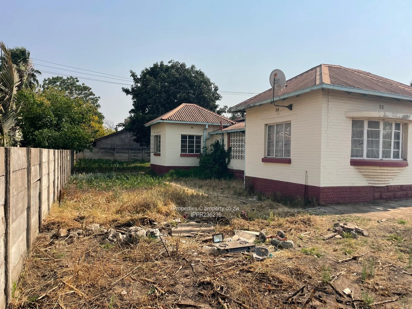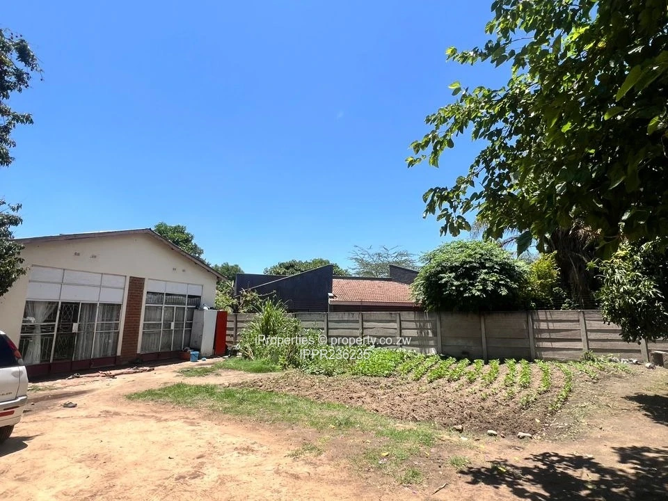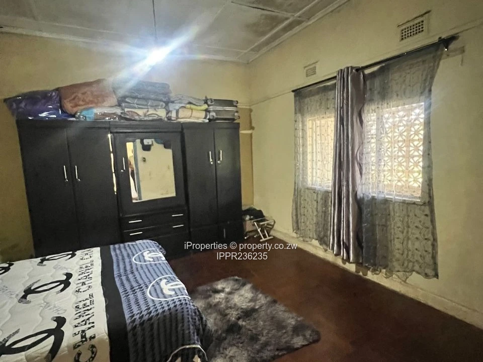 This property sits on 2,187 square metres and features an older main house with 5 bedrooms, including one ensuite, four enclosed verandahs, a veranda toilet, one kitchen, and a spacious combined dining and lounge area with original wooden tiles. The cottage offers 2 bedrooms, a large lounge, one kitchen, and one bathroom. Additional features include a twin carport, borehole water, council water, and 3-phase ZESA (unlimited).
