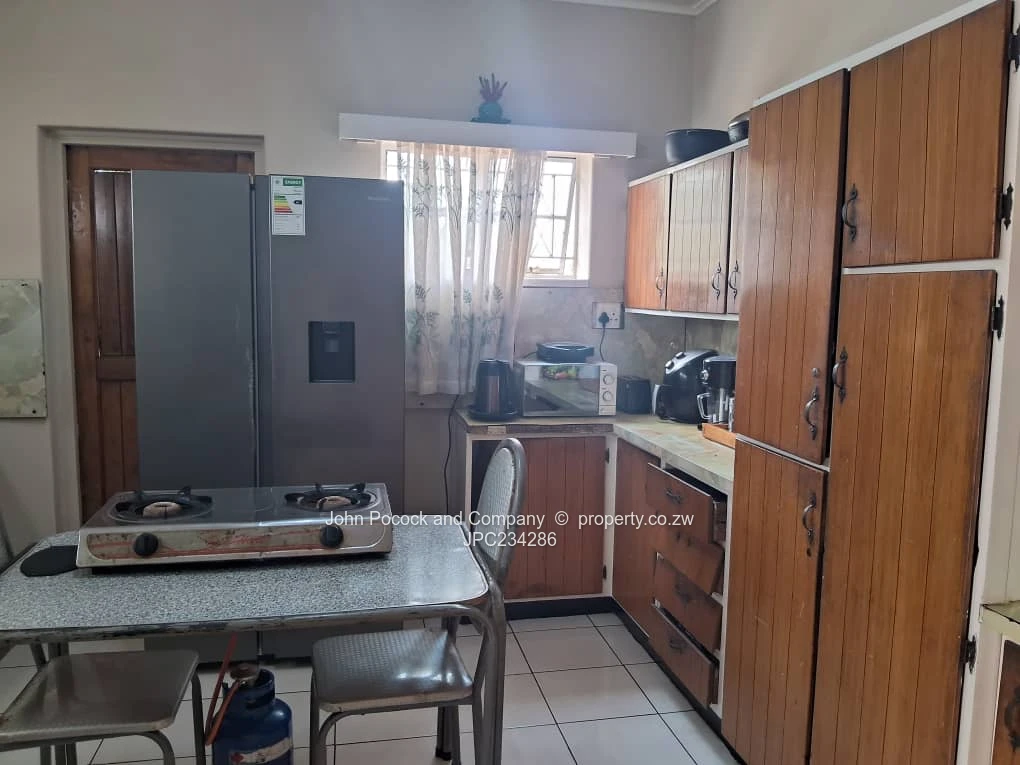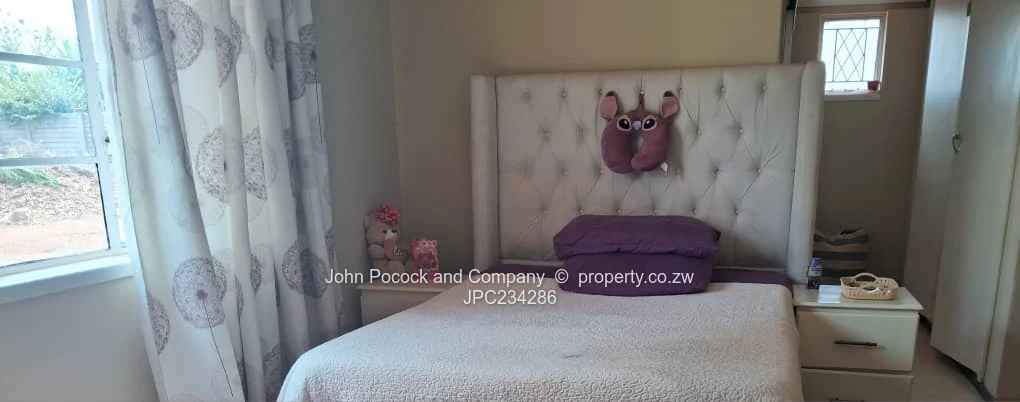 A beautiful home in one of Bulawayo's most sought-after neighbourhoods. Perfect for families seeking comfort. It is on 1 190 square metres of land. House offering 3 spacious and bright bedrooms with main en-suite, separate family W/C, separate family bathroom all with ceramic floors. Combined spacious lounge and dining perfect for entertaining guests or family time, kitchen with fitted cupboards. Fully walled all four sides and gated. Single staff accommodation with separate bathroom and toilet.